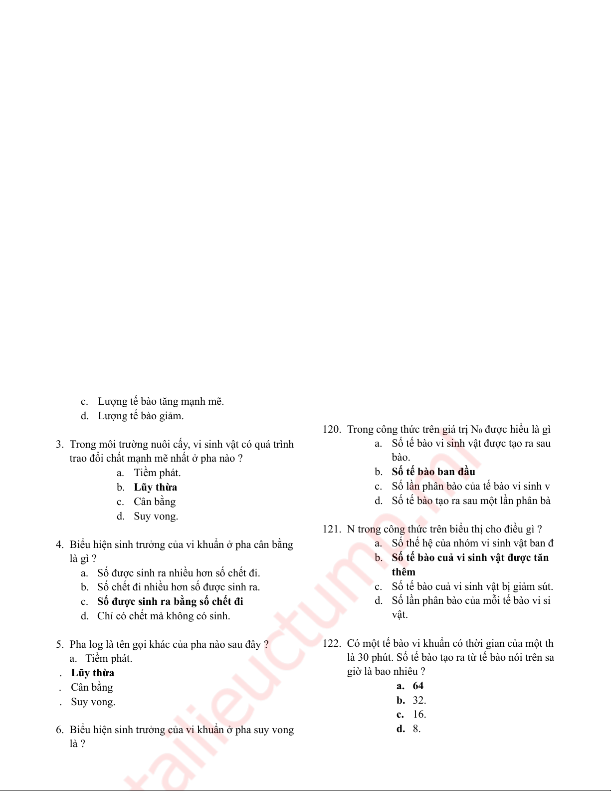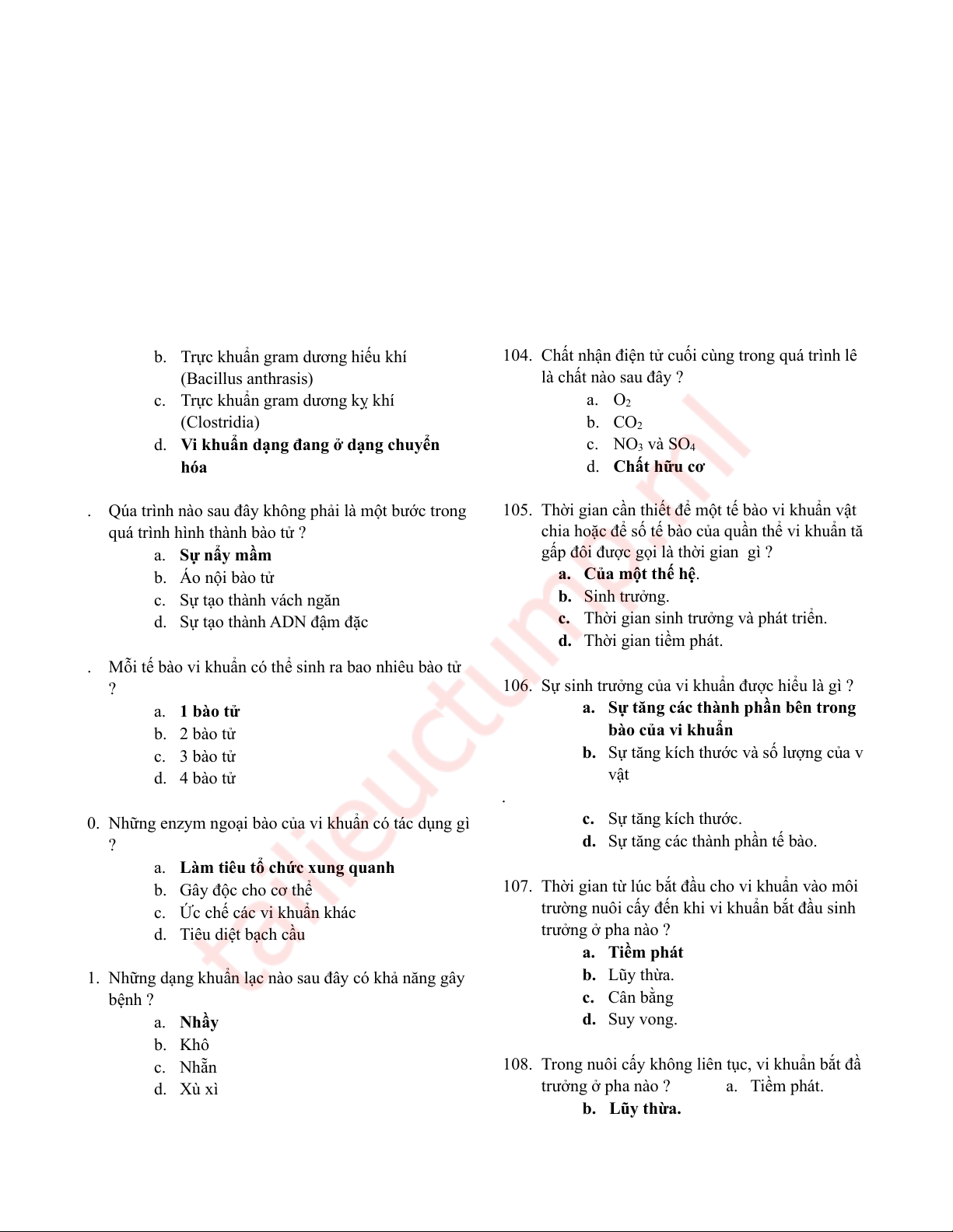BỘ CÂU HỎI TRẮC NGHIỆM –MÔN VI SINH HỌC- 4 ĐƠN VỊ HỌC TRÌNH