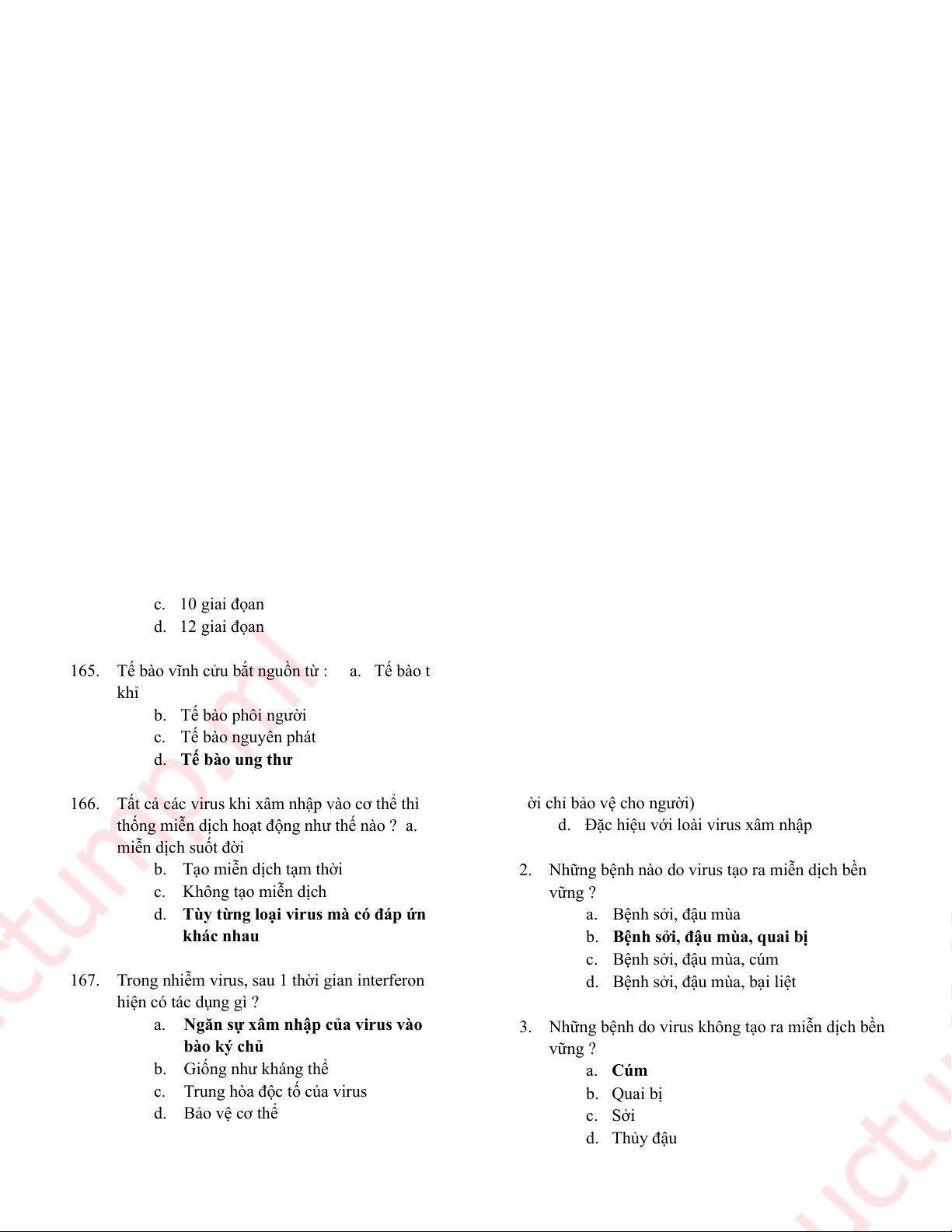 d. Có emzym RT dùng nhân lên trong quá trinh c. 2 - 3 năm phiên mã ngược d. 5-7 năm