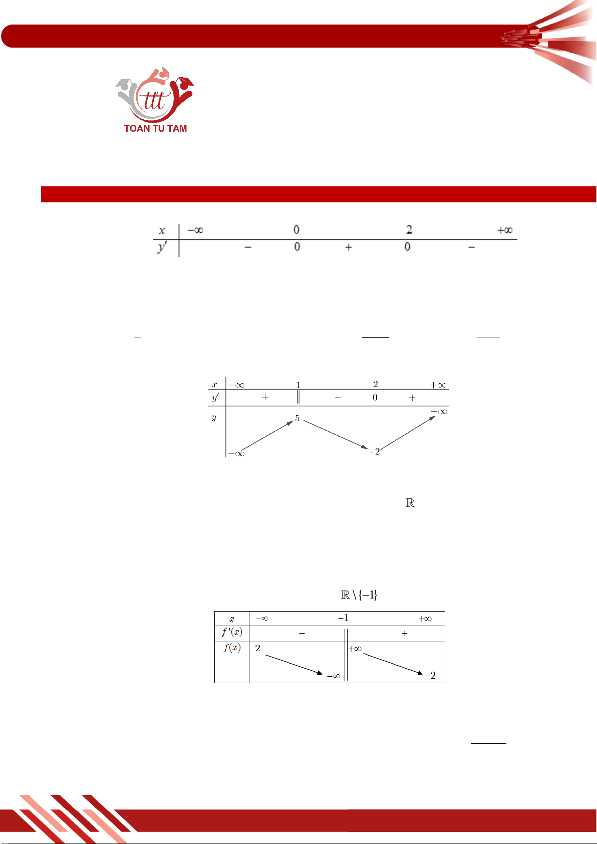 » Câu 9. Cho bảng biến thiên như hình vẽ dưới. Hỏi đây là bảng biến thiên của hàm số nào trong các hàm số sau?