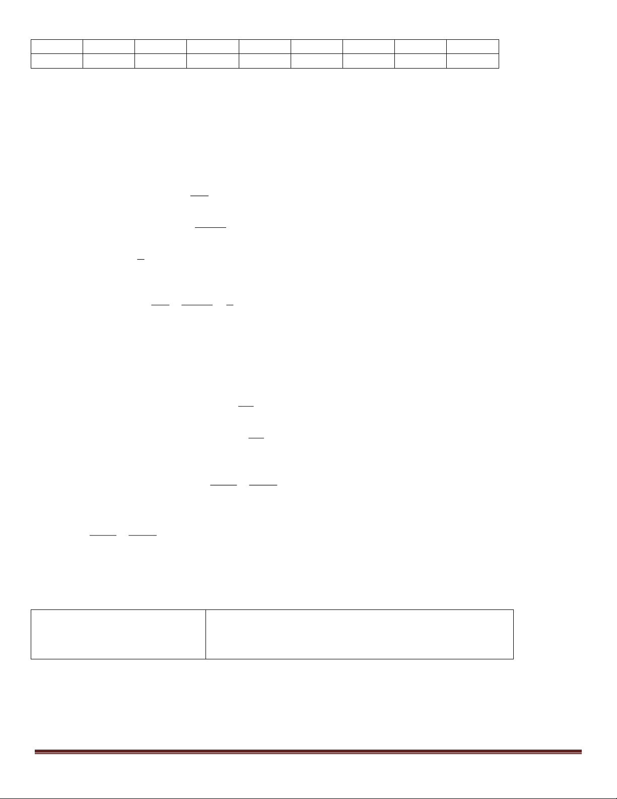Phần I:Trắc nghiệm khách quan: (2 điểm).Mỗi câu đúng 0,25 điểm Câu 1 2 3 4 5 6 7 8 Đ/án B B B B A D A B Phần II:Tự Luận Câu Đáp án Điểm