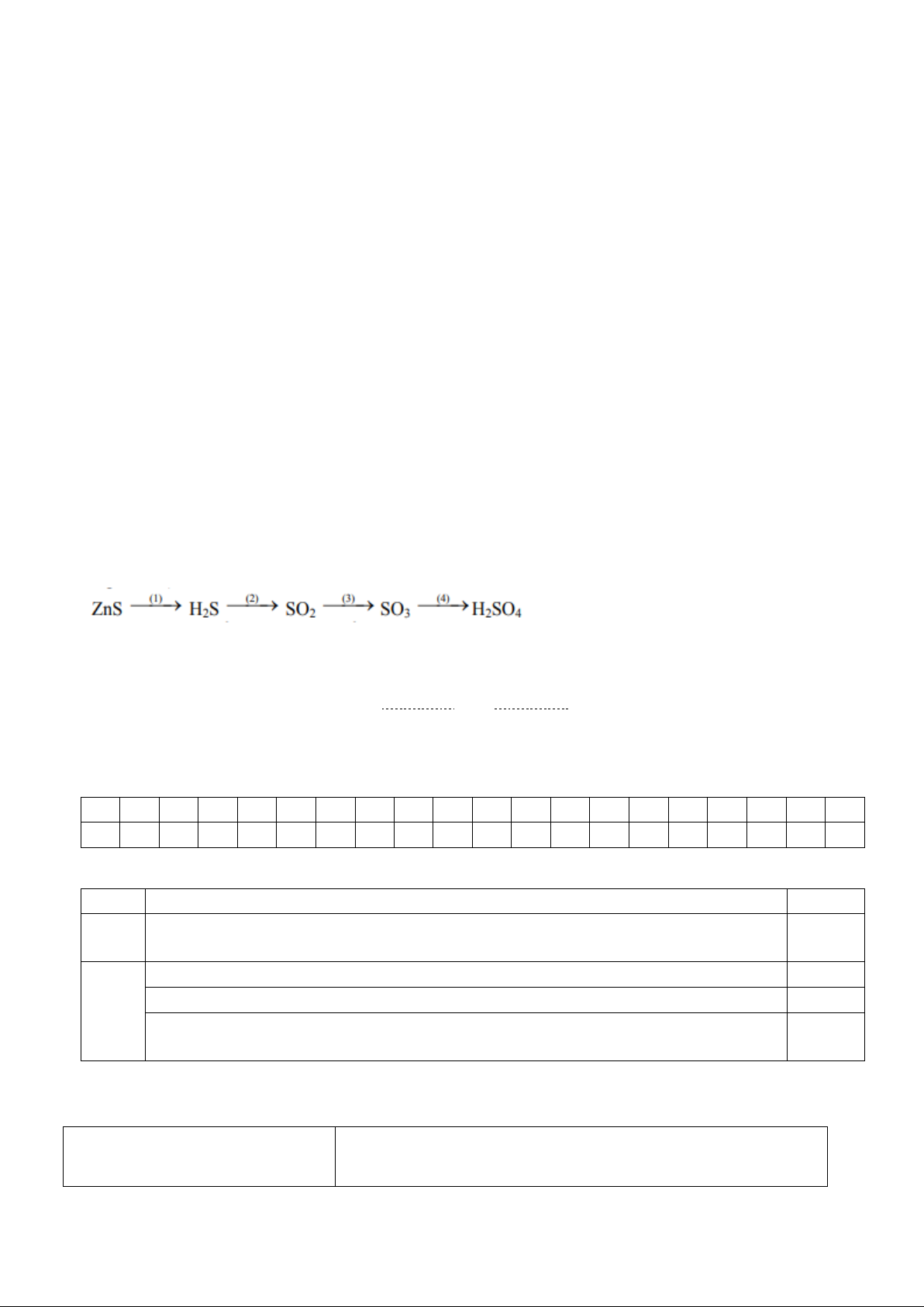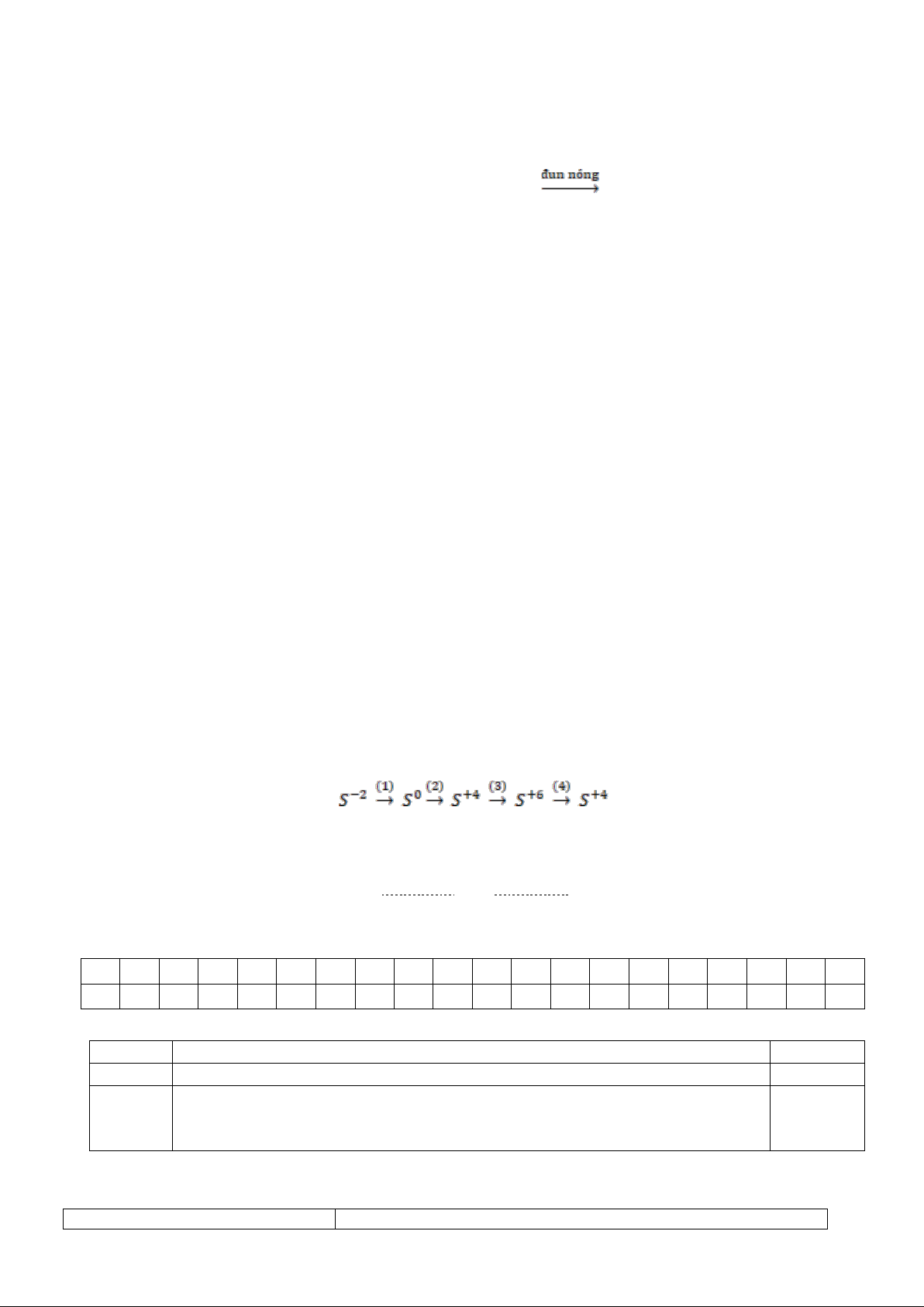 3Mg + 4H2SO4 (đặc) → 3MgSO4 + S + 4H2O 0,25x4 o S + H2 ⎯t⎯ → H2S 2H2S + 3O2 → 2SO2 + 2H2O o SO2 + O2 ⎯V⎯ 2O5⎯ , t ⎯ → SO3