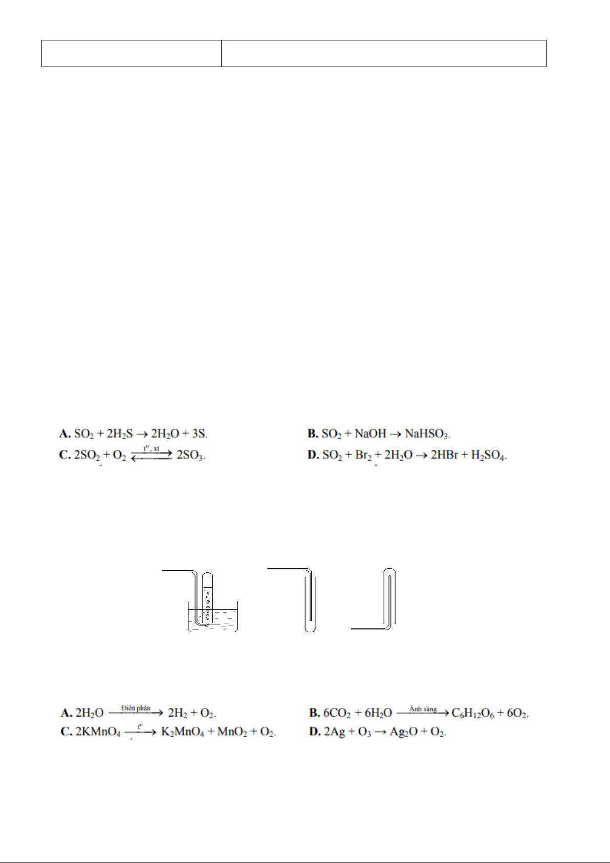 Câu 9: Trong phản ứng nào sau đây, SO2 thể hiện tính oxi hóa?
