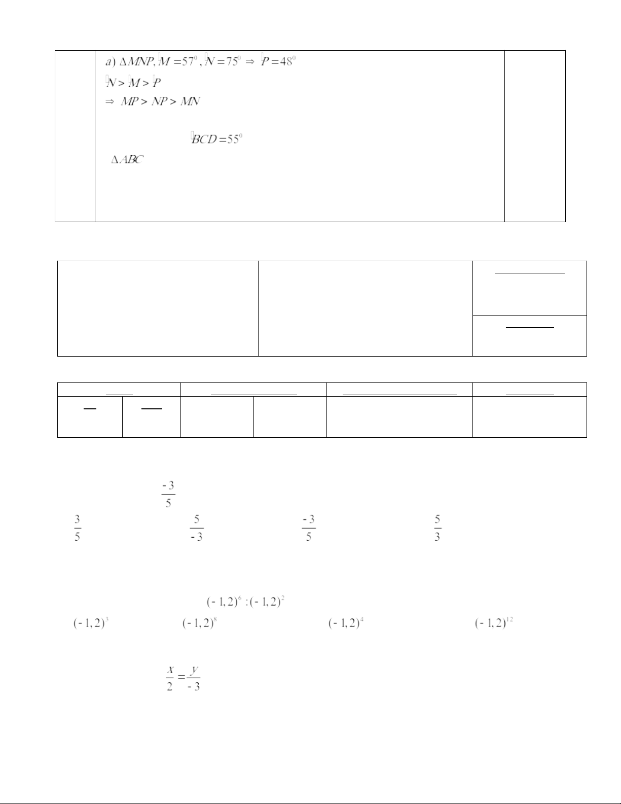 a)Cho tam giác MNP có =56°, =65°. Tìm cạnh nhỏ nhất, cạnh lớn nhất của tam giác MNP. (1,0đ)