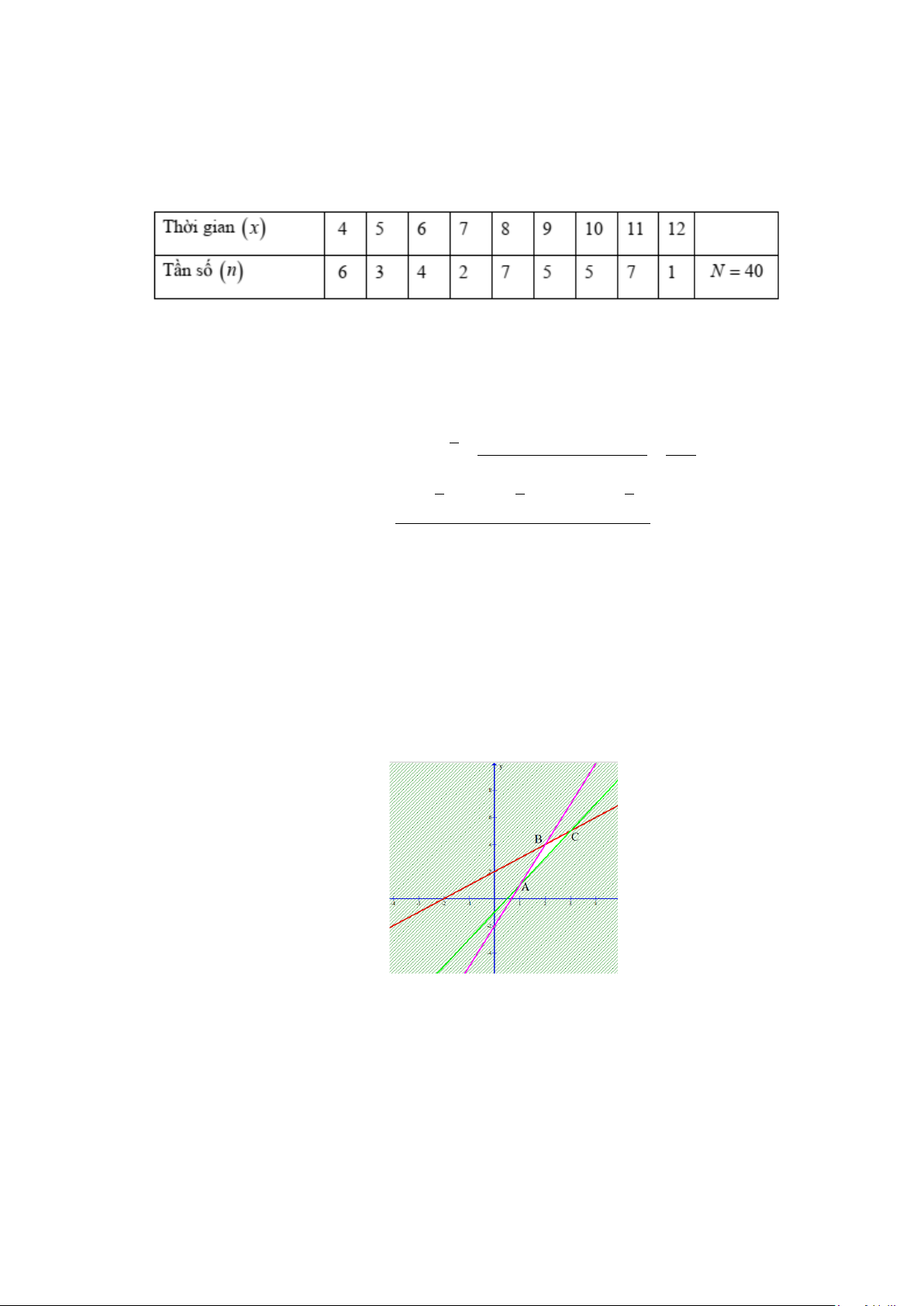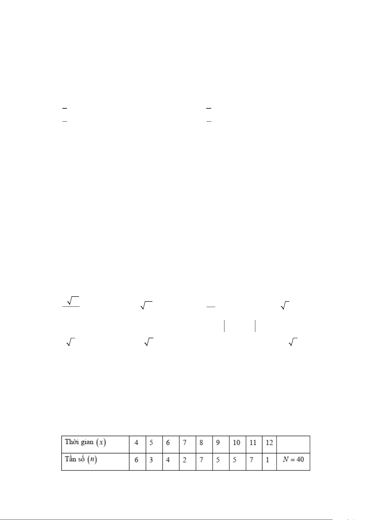 Câu 10: Theo dõi thời gian làm một bài toán (tính bằng phút) của 40 học sinh, giáo viên lập được bảng sau: