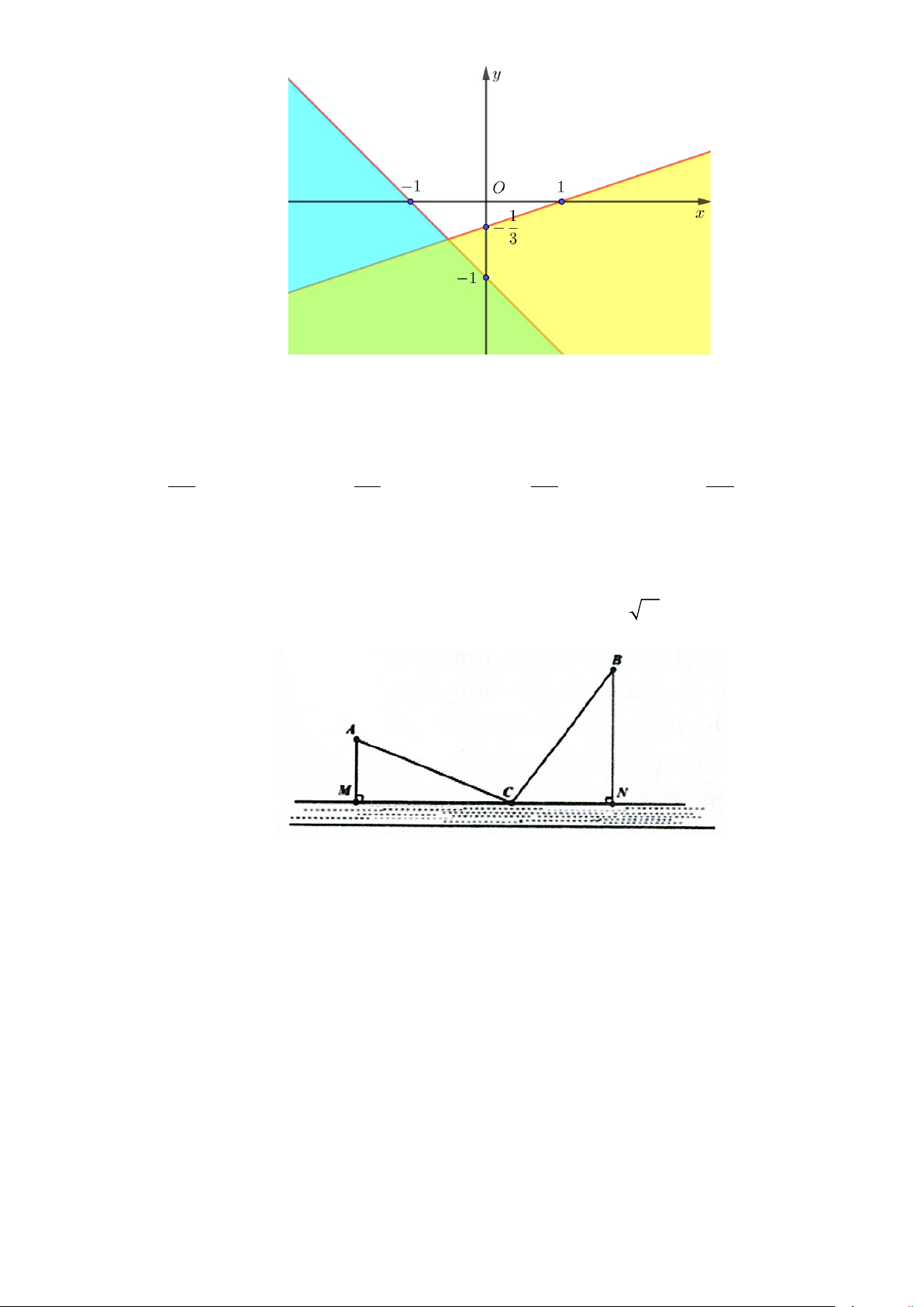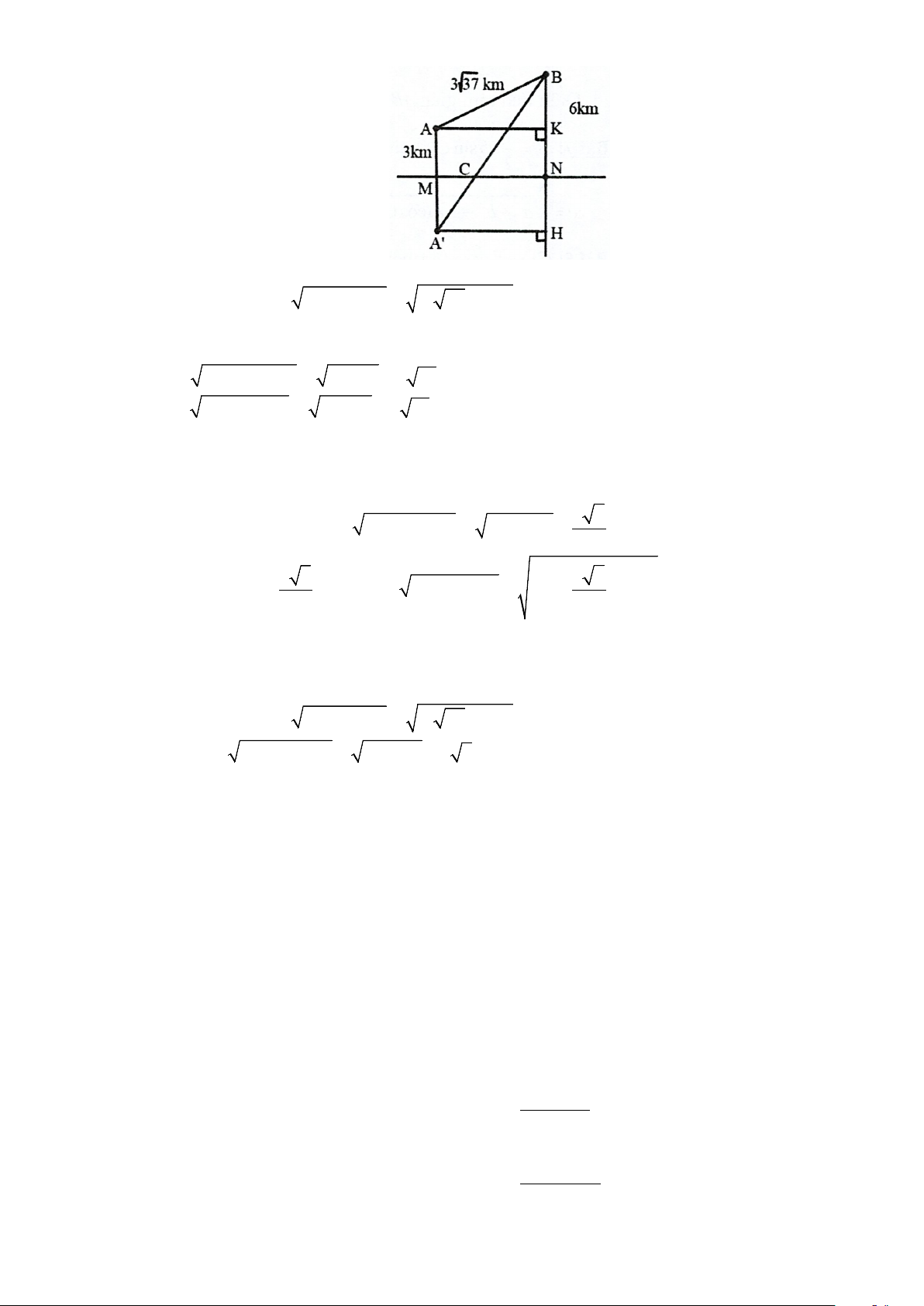 d) [VD] Gọi T là tổng độ dài đường ống từ trạm nước đến A và B . Giá trị nhỏ nhất của T lớn hơn 20. Lời giải Kẻ AK BN; A′ ⊥ H ⊥ BN . Trang 7/13 - WordToan a) Đúng. ′ 2 2 2 2