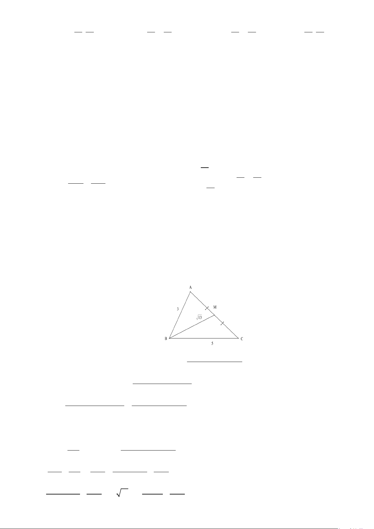 Câu 13: Cho tam giác ABC có ABC có AB = 3, BC = 5 và độ dài đường trung tuyến BM = 13 . 2 2 2 2 2 2