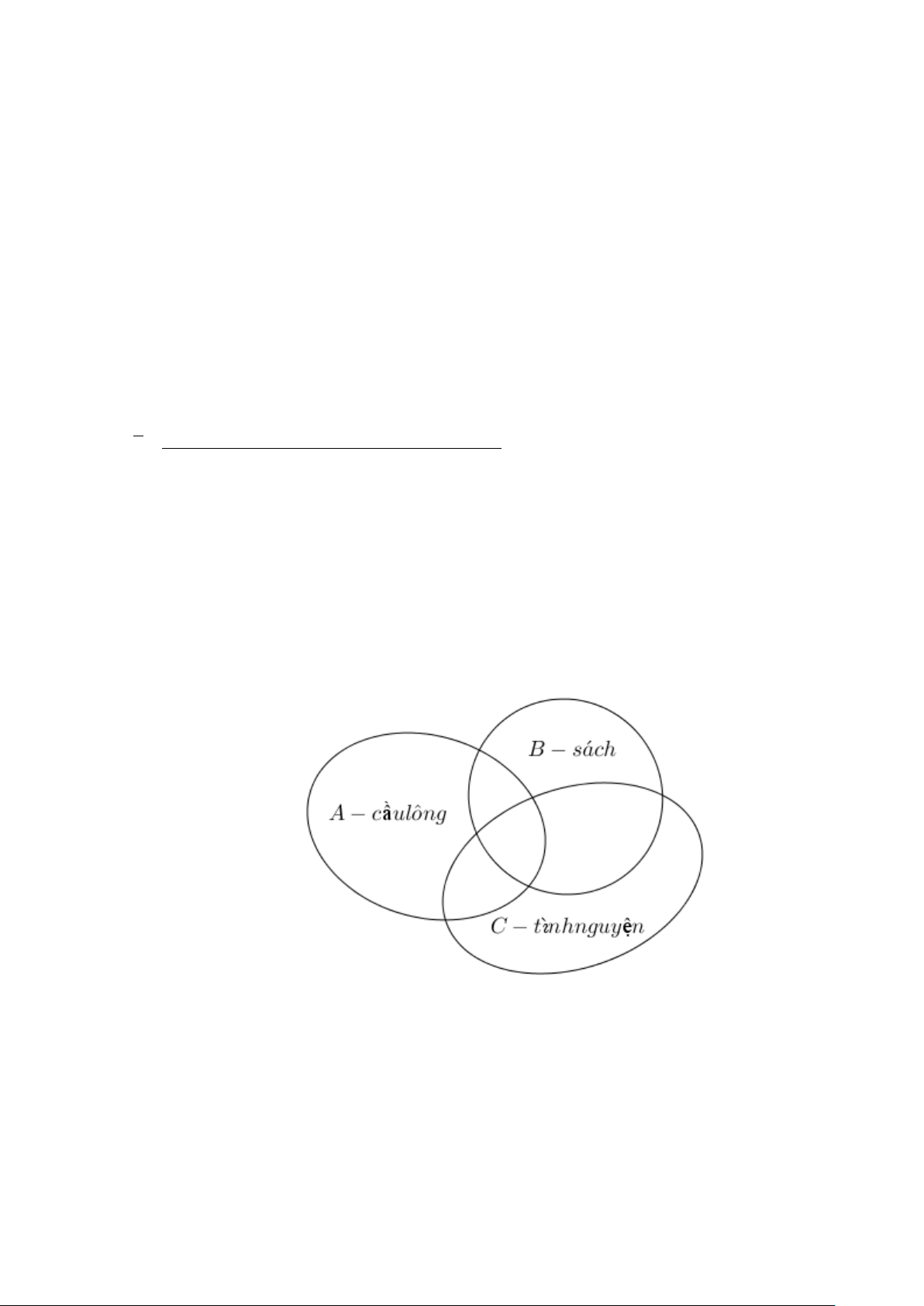cả hai câu lạc bộ Tình nguyện và câu lạc bộ Sách. Hỏi có bao nhiêu em chỉ tham gia đúng một câu lạc bộ Cầu lông?