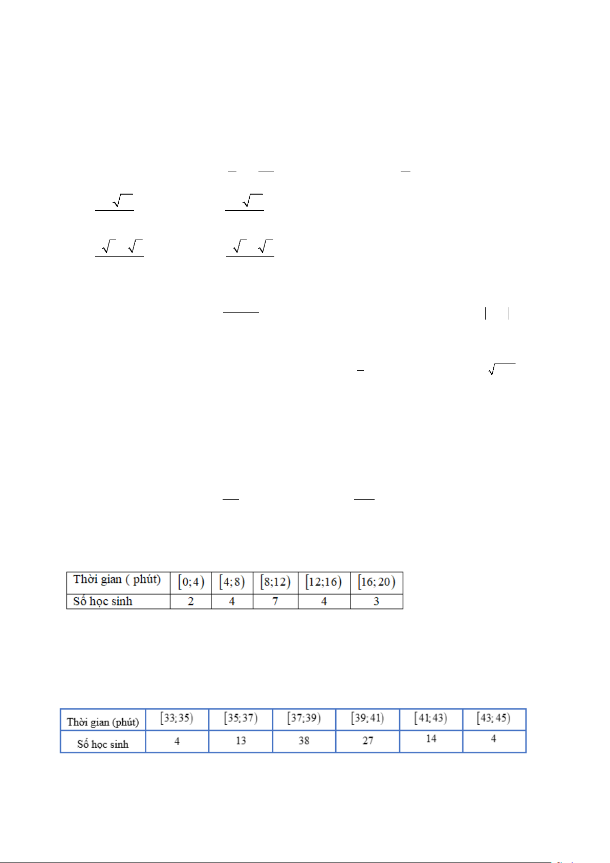 Câu 7. Tìm hiểu thời gian hoàn thành một bài tập ( đơn vị: phút) của một số học sinh thu được kết quả sau: