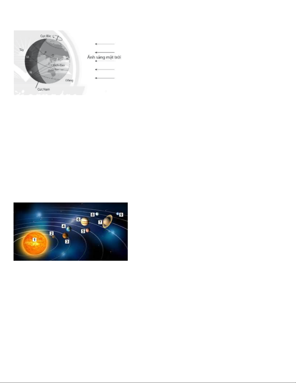 Câu 20. Bề mặt Trái Đất luôn có một nửa được Mặt Trời chiếu sáng là ngày và một nửa không được chiếu sáng