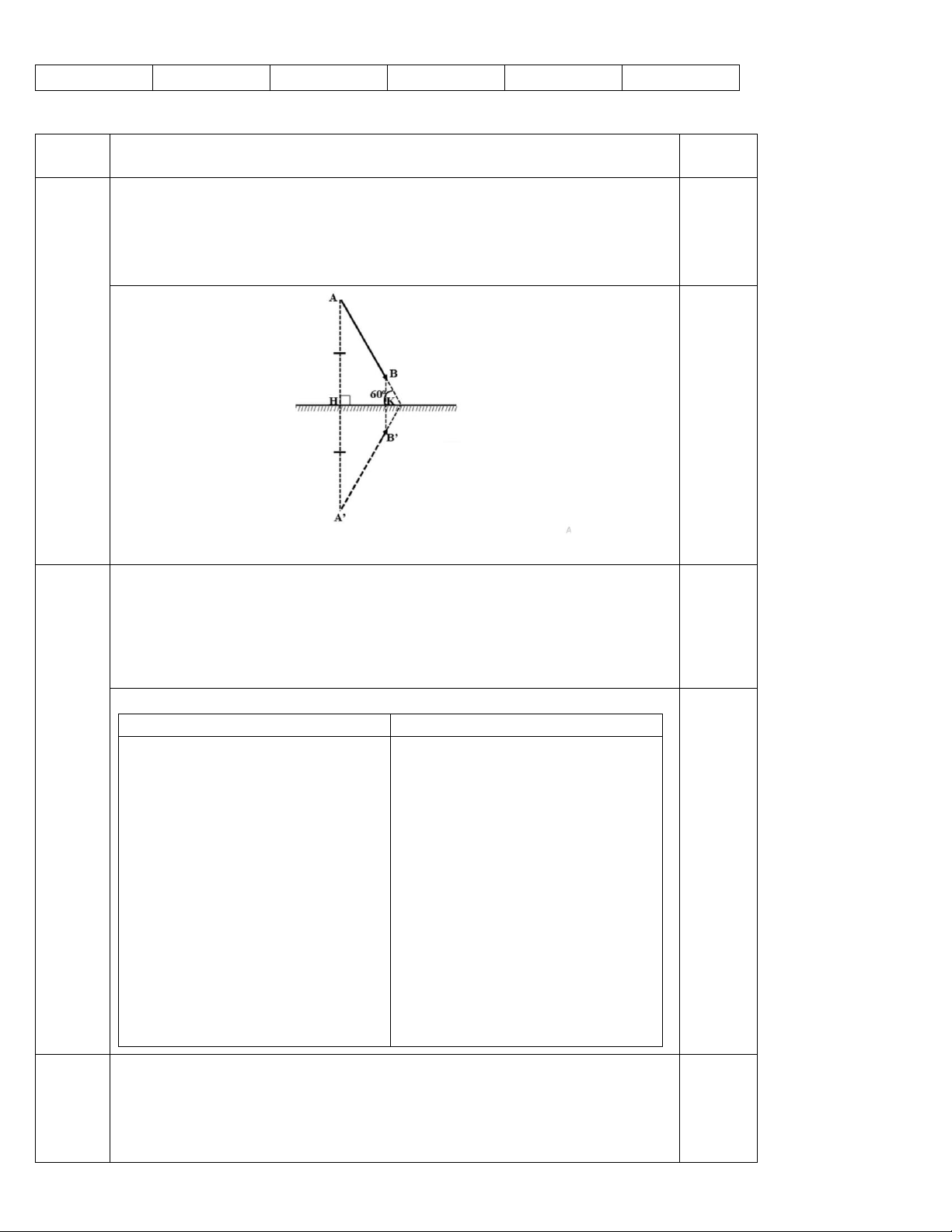 b) Một vật sáng AB đặt trước một gương phẳng như hình dưới đây. Góc tạo bởi vật và mặt phẳng gương