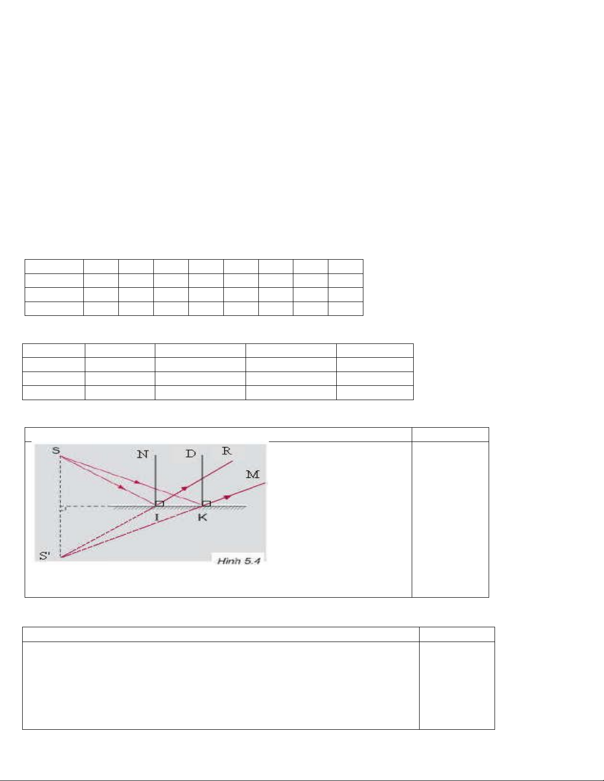Câu 8. Một tia sáng chiếu tới gương phẳng và hợp với mặt gương một góc 300. Góc phản xạ bằng: A. 600 B. 900 C. 300 D. 500