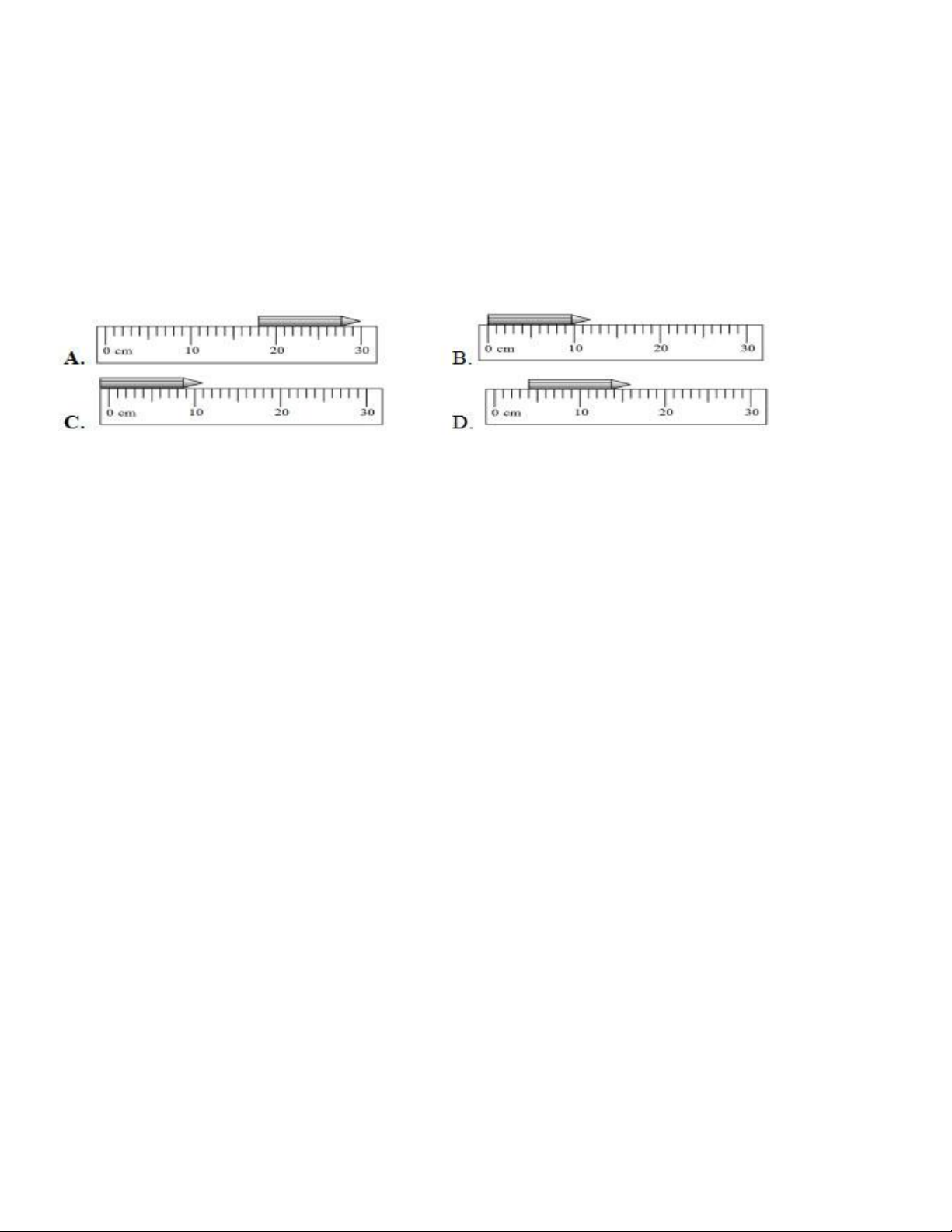 Câu 20. Đo chiều dài của chiếc bút chì theo cách nào sau đây là hợp lí nhất?