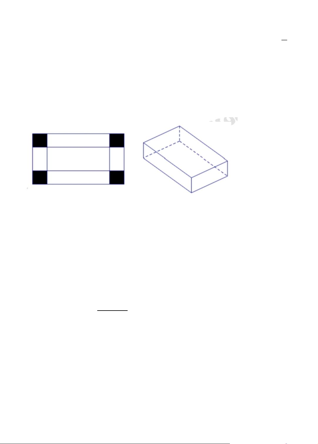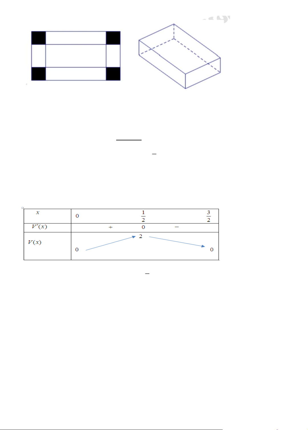 Gọi x ( cm) là độ dài cạnh của các hình vuông bị cắt sao cho thể tích của khối hộp là lớn nhất. Tìm x Đáp án:0,5 cm Lời giải: 3