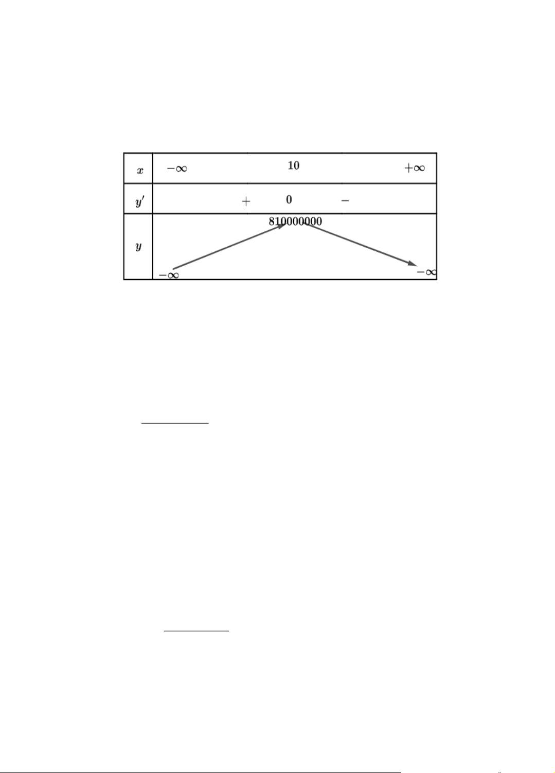 − 0000x + 2000000; y = 0 x = 10 . Bảng biến thiên