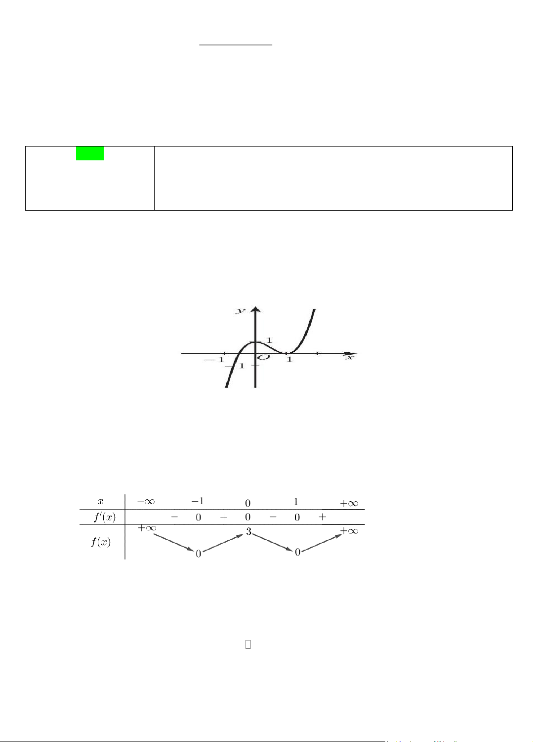 Phương trình f (x) = m có ba nghiệm thực phân biệt khi và chỉ khi A. m( 3 − ; ) 1 . B. m 3 − ; 1 . C. m( 1 − ;3) . D. m 1 − ; 3