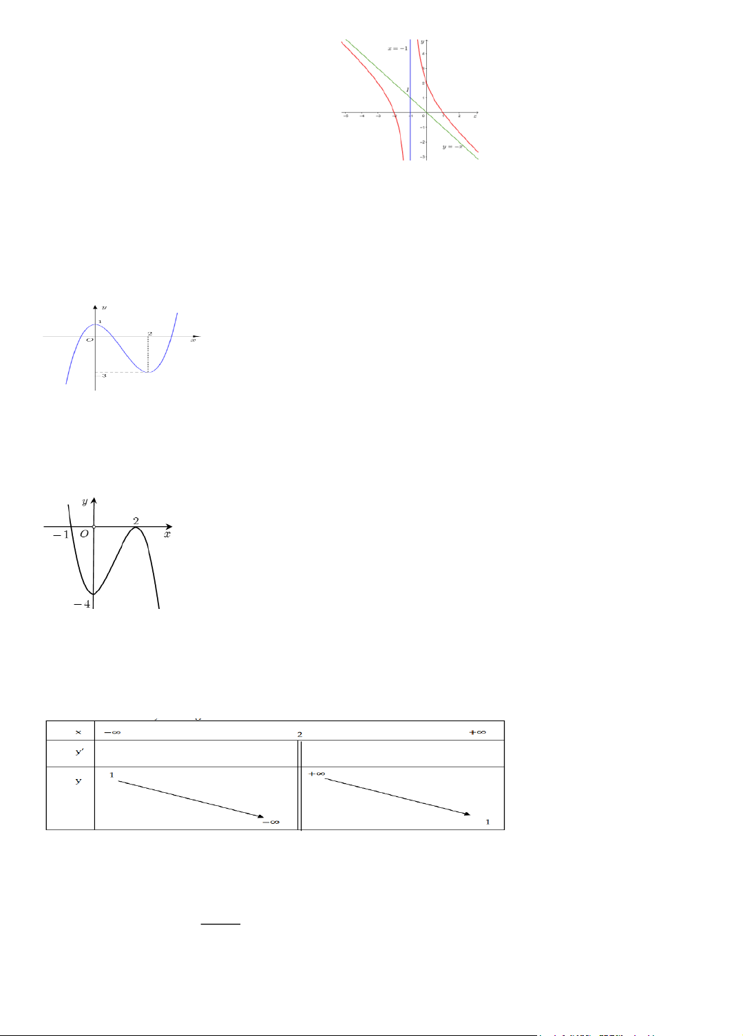 Tâm đối xứng của đồ thị hàm số y = f (x) là: A. ( 1 − ;2) . B. (2; 1 − ) . C. (0;2) . D. ( 1 − ;0) .