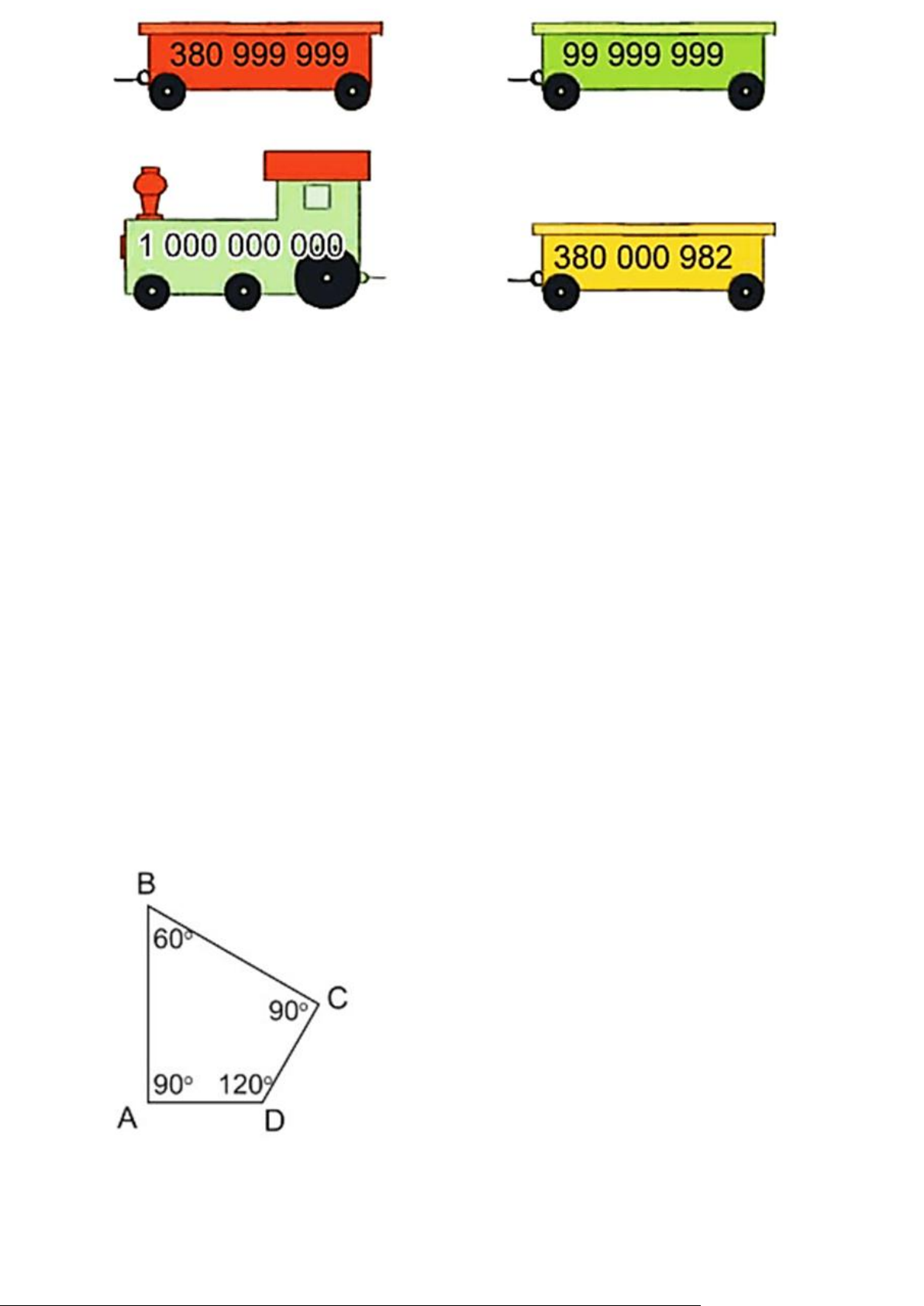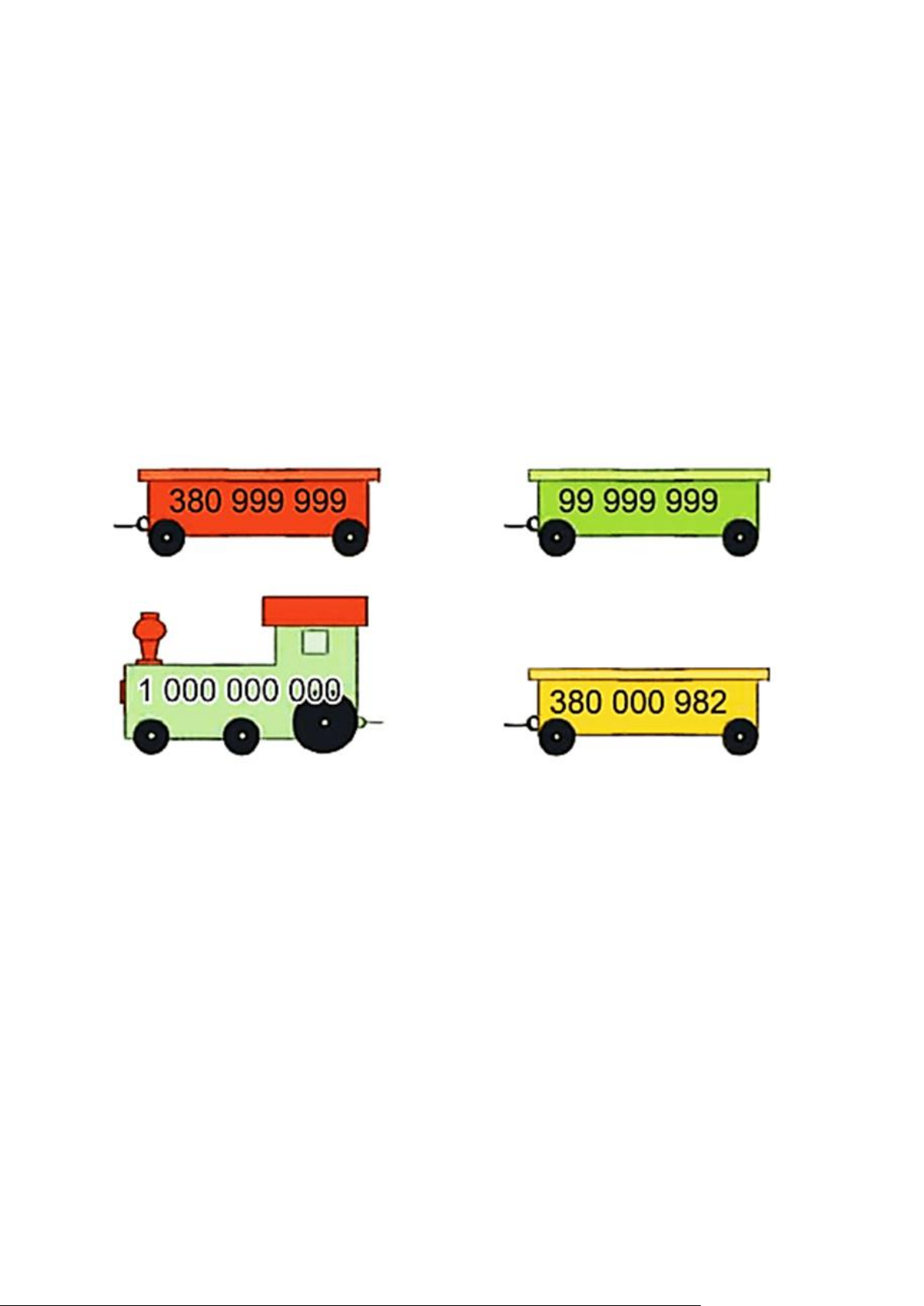 Trong các số ghi trên đầu tàu và toa tàu ở trên, số bé nhất là: A. 380 999 999 B.99 999 999 C.1 000 000 000 D. 380 000 982