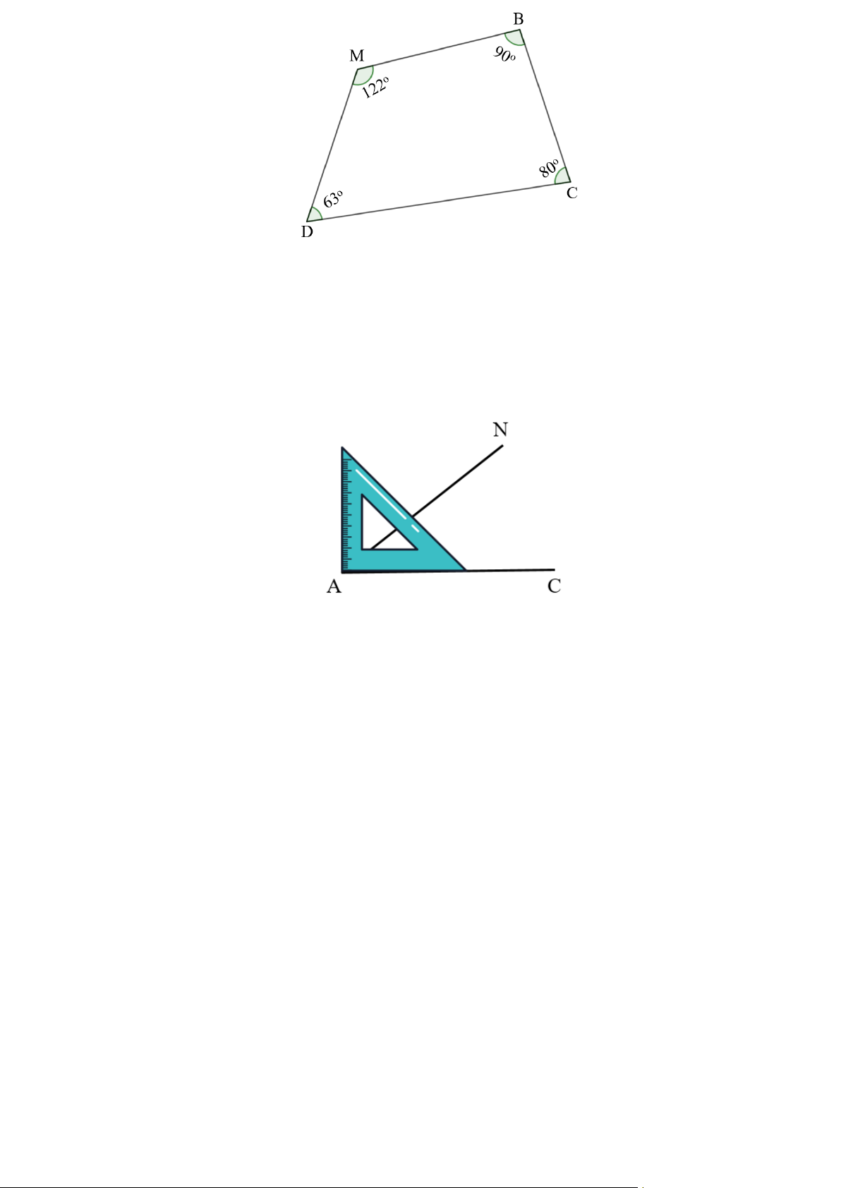 Câu 2. Số đo góc đỉnh M; cạnh MB, MD trong hình dưới đây là Trang 4 A. 122o B. 63o C. 90o D. 80o