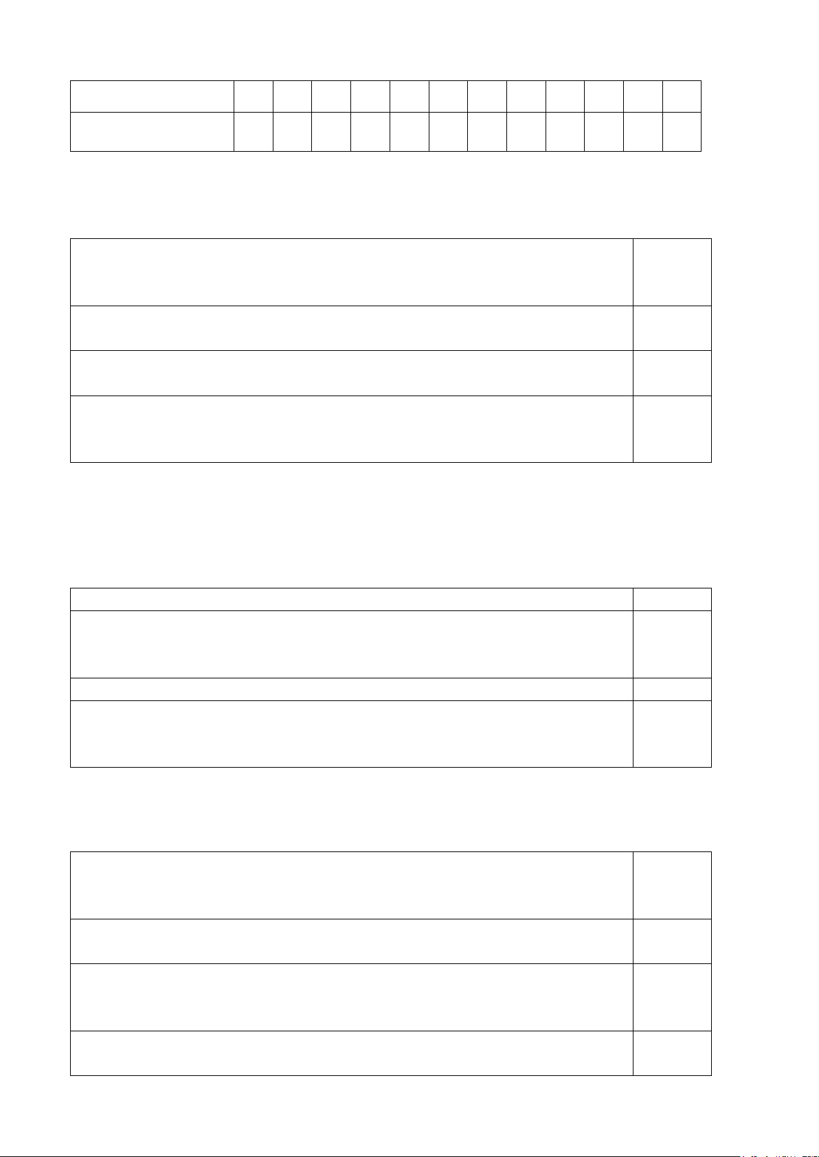 1. Câu trắc nghiệm nhiều phương án lựa chọn: 3.0 điểm (Mỗi ý đúng: 0,25) Câu 1 2 3 4 5 6 7 8 9 10 11 12 Đáp án B D A C C A C C D A D B