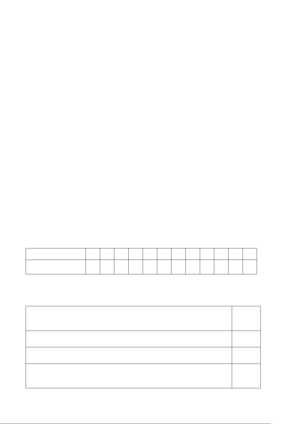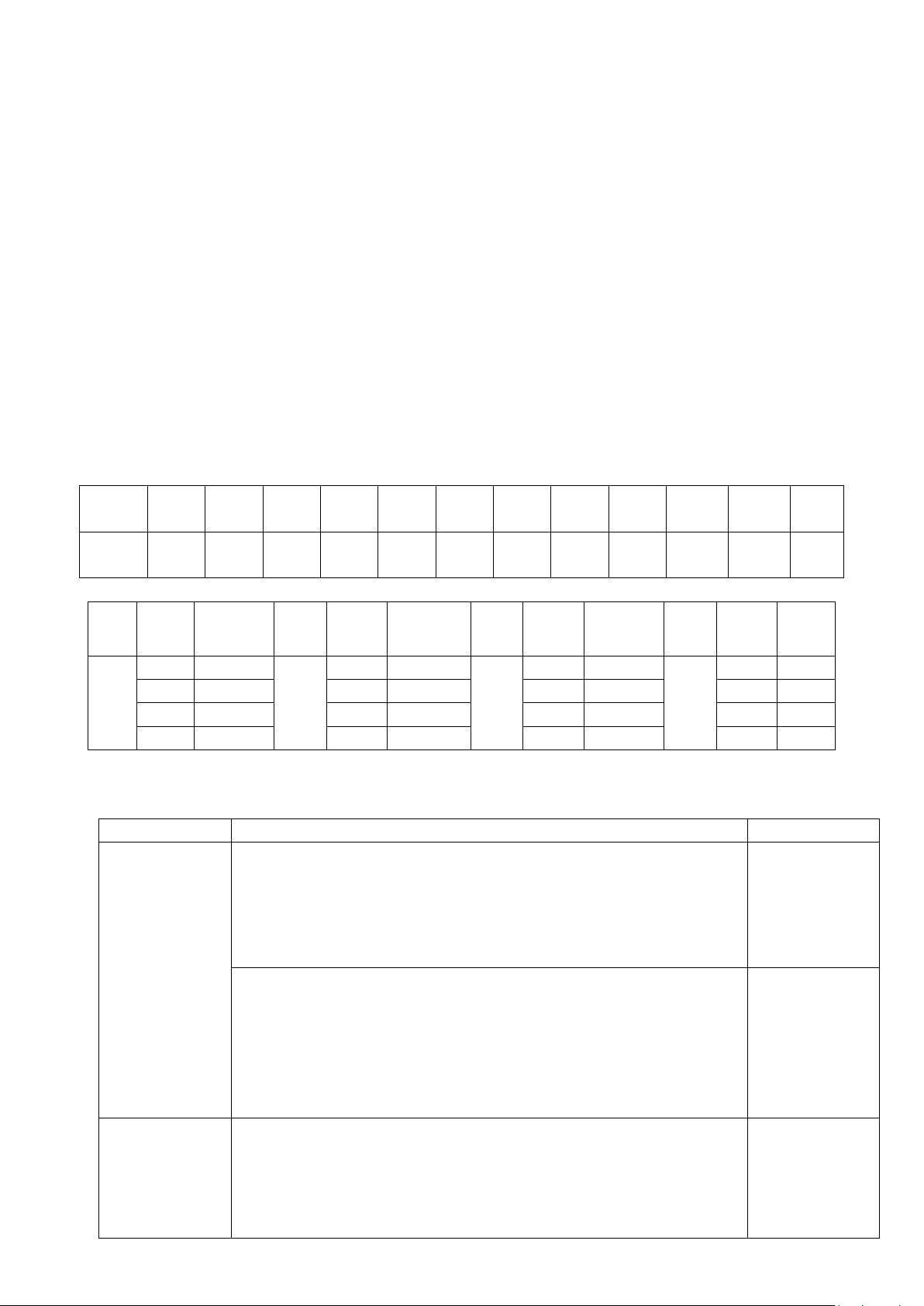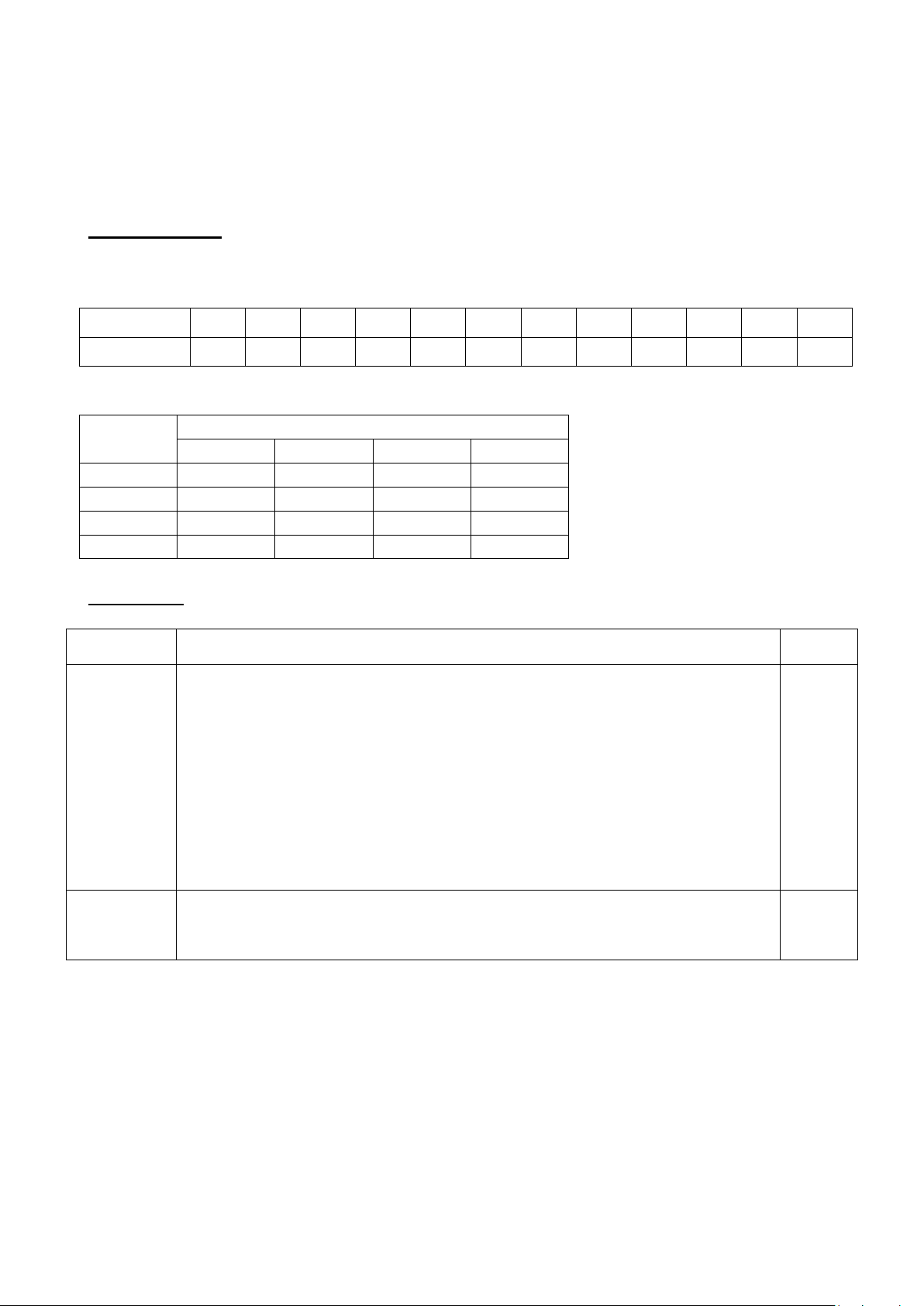 1. Câu trắc nghiệm nhiều phương án lựa chọn: 3.0 điểm (Mỗi ý đúng: 0,25) Câu 1 2 3 4 5 6 7 8 9 10 11 12 Đáp án B D A C C A C C D A D B
