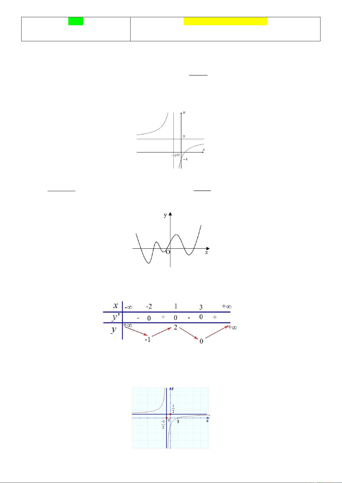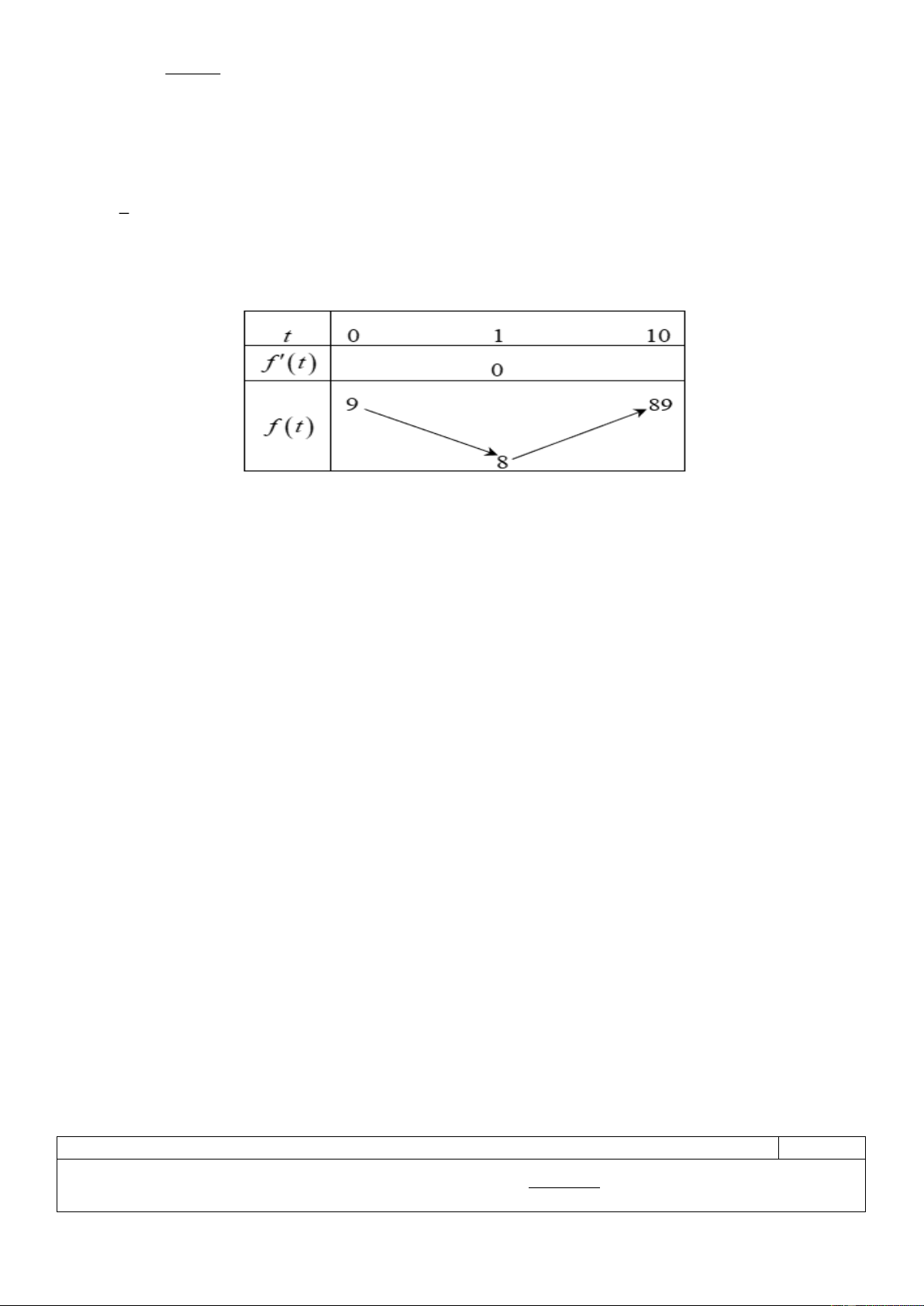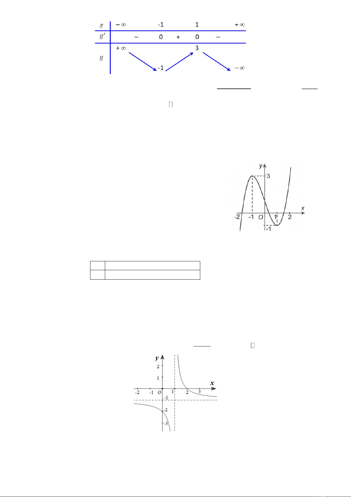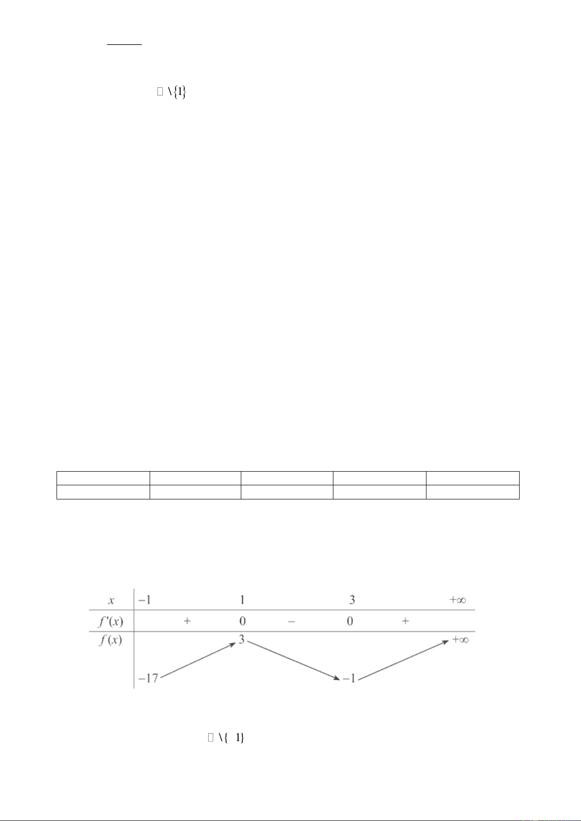 - Cho bảng biến thiên hàm số TD