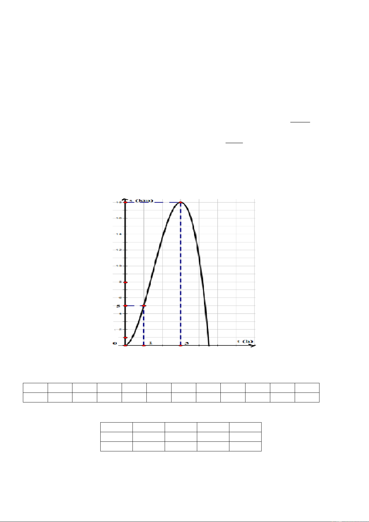 ) có đồ thị như hình bên dưới (trong đó t là thời gian tính bằng giờ, s là quãng đường