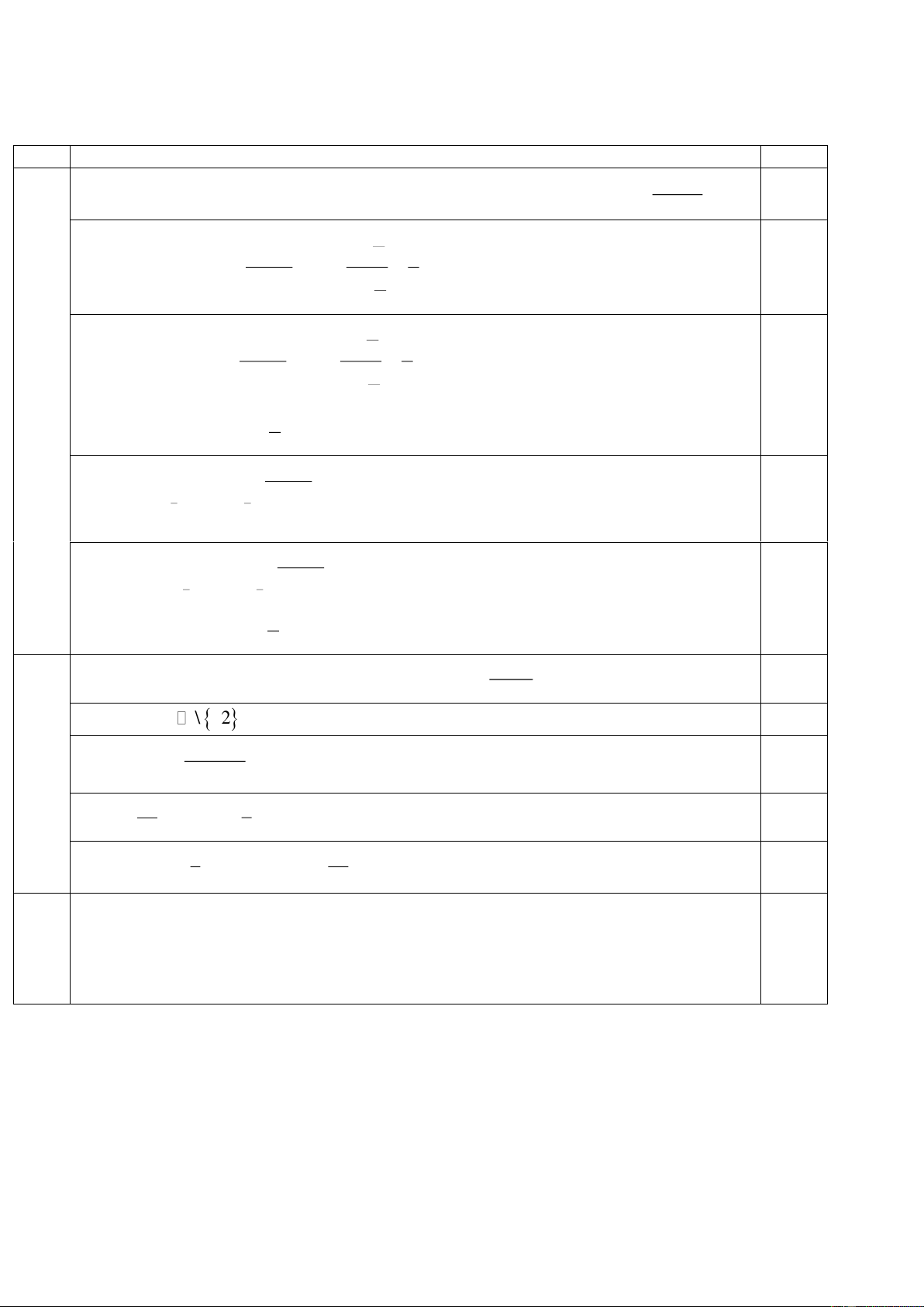 ĐÁP ÁN VÀ HƯỚNG DẪN CHẤM PHẦN I. 1 2 3 4 5 6 7 8 9 10 11 12 A D D D D B D C B D B B PHẦN II. a) b) c) d) Câu 1 S Đ S Đ Câu 2 S Đ Đ S PHẦN III. Câu 1: 2,67 Câu 2: 1 − Trang 4 Câu 3: 5,18 Câu 4: 7 Phần IV. CÂU NỘI DUNG ĐIỂM x + 2