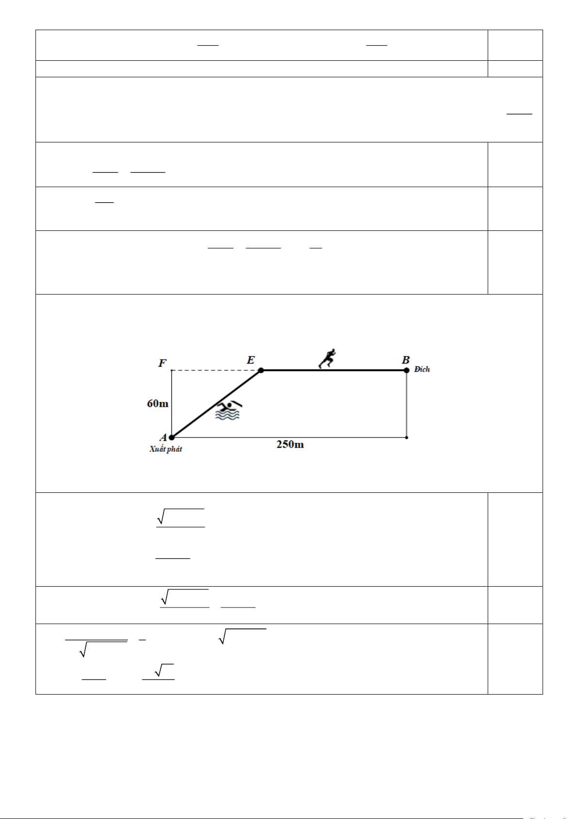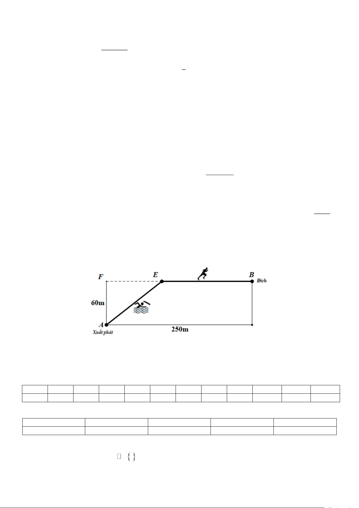 thập phân) để đến đích nhanh nhất, biết rằng vận tốc bơi là 1,5 m/s, vận tốc chạy là 4 m/s. Gọi EF = x 2 2 x + 60
