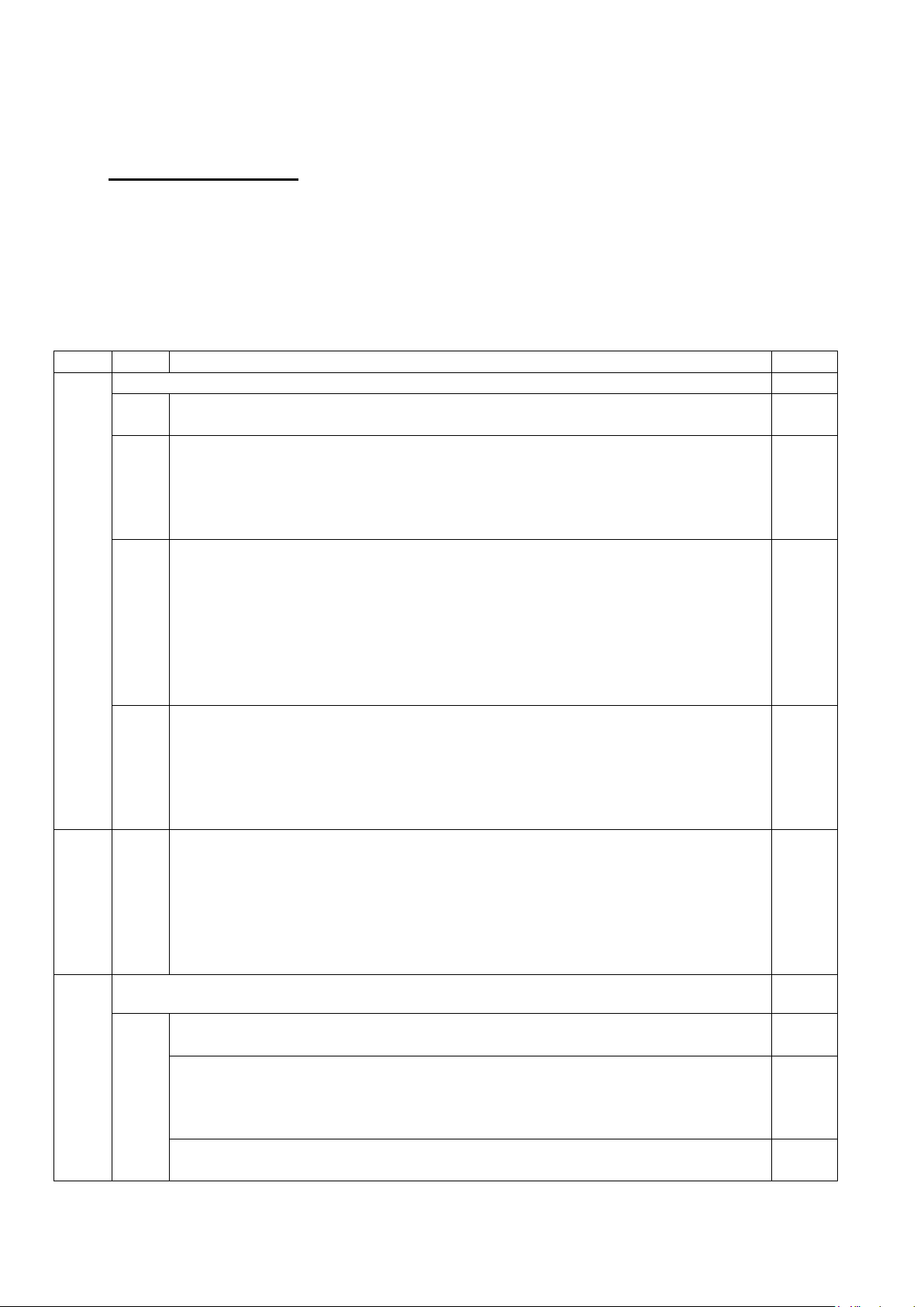 - Hướng dẫn chấm: trả lời đúng mỗi ý được 0,5 điểm
