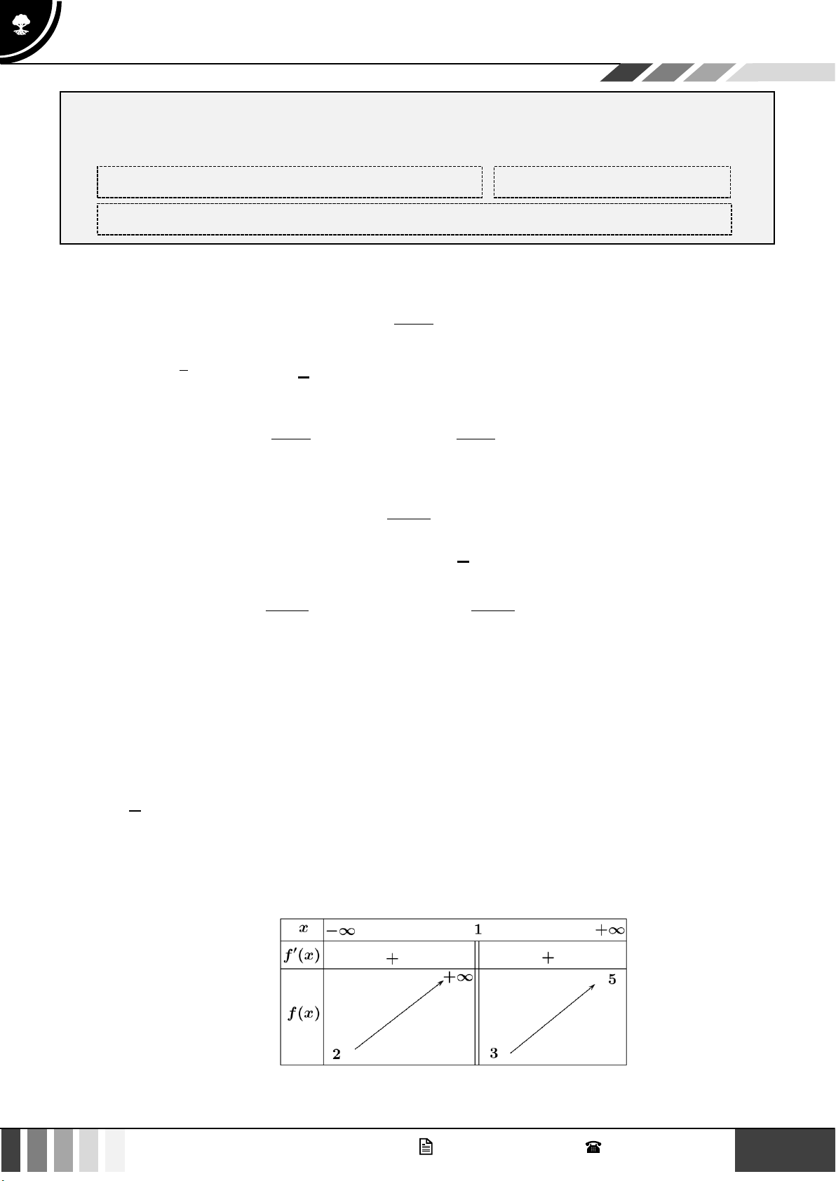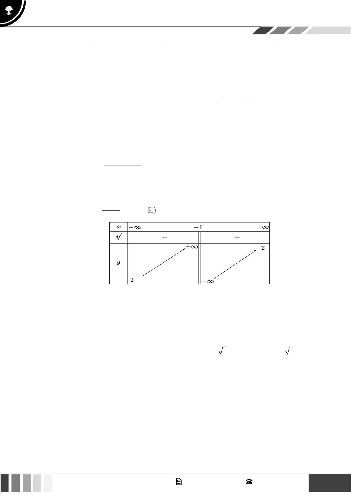 d) Hàm số đồng biến trên \ 1 Câu 3: