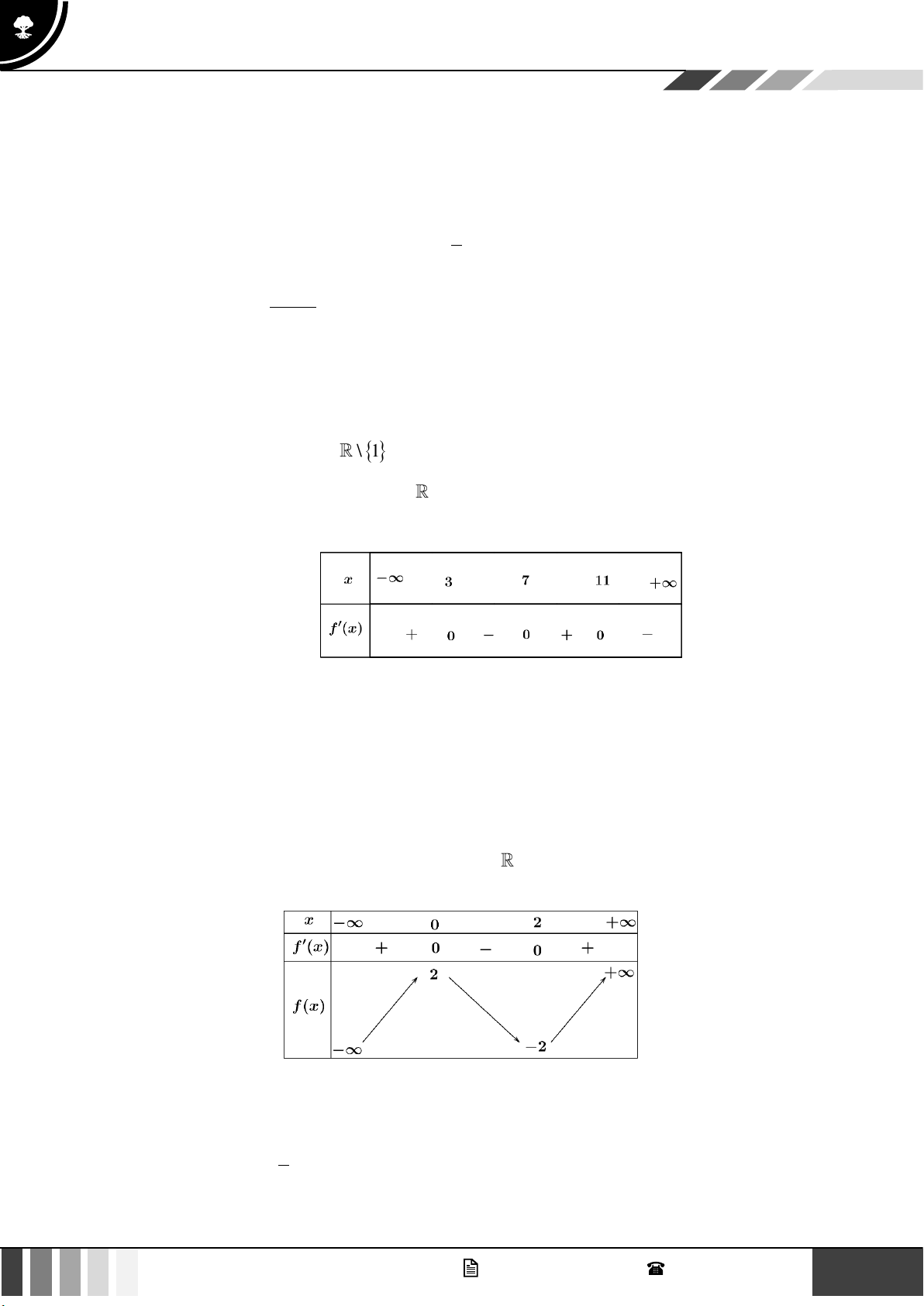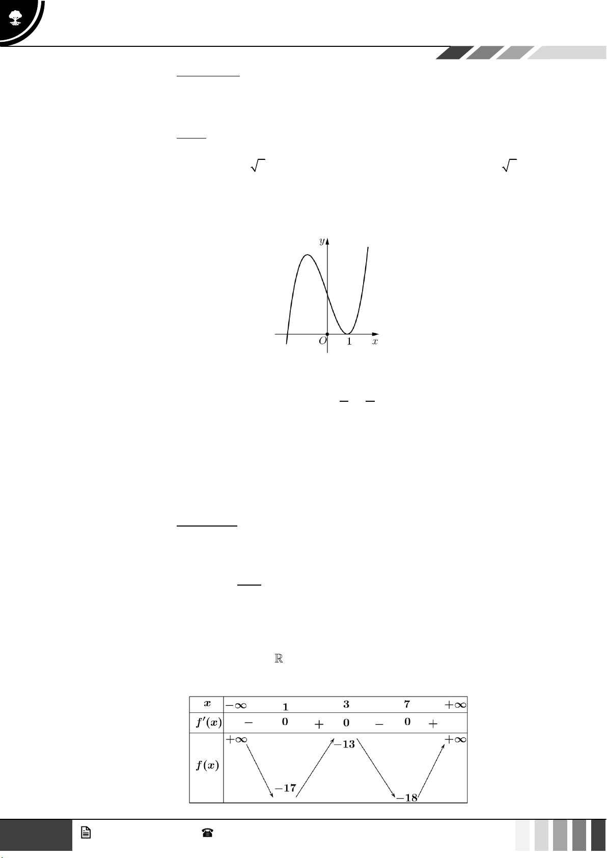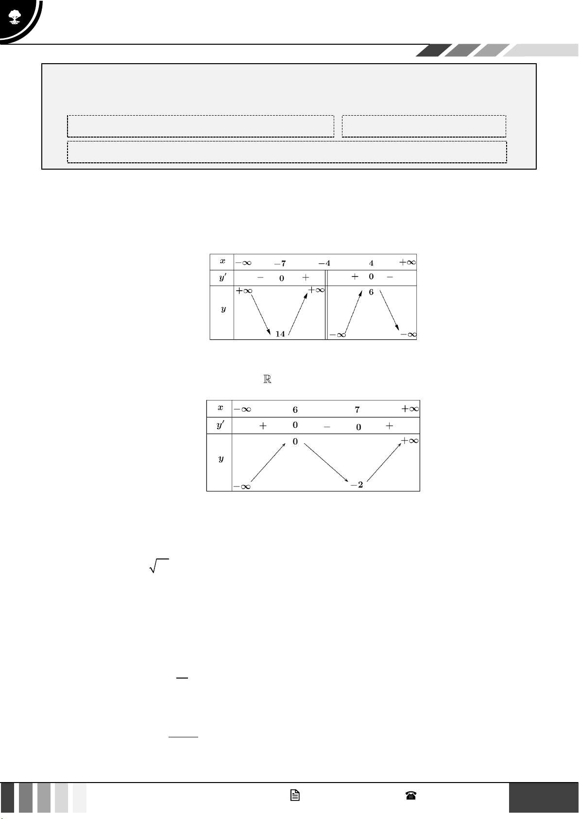 và có bảng biến thiên như hình vẽ. Xét tính đúng sai của các khẳng định sau 2 GV. Phan Nhật Linh - SĐT: 0817 098 716