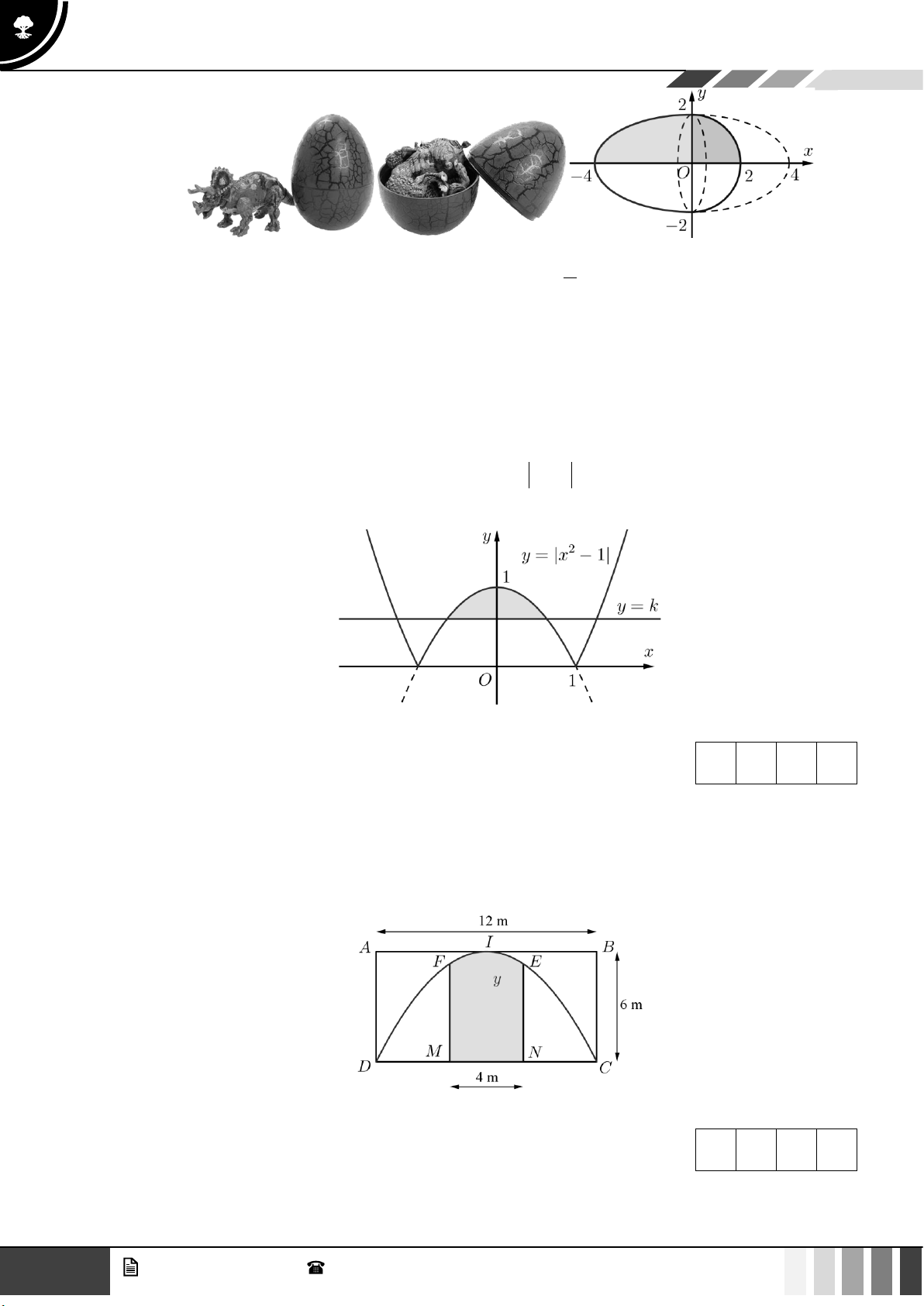 tích của hình phẳng (H ) gấp hai lần diện tích hình phẳng được tô màu trong hình vẽ bên. Đáp án:
