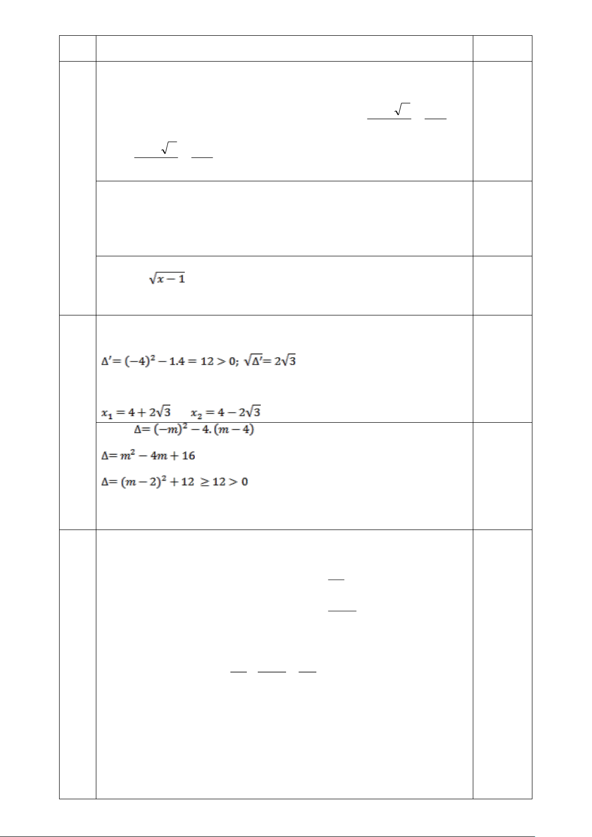 Từ đó tìm được 4 nghiệm của pt : x1 =1; x2 = -1; x3=3; x4=-3 c) d) x+5 - 7 = 0 0,5 đ Tìm được x = 2 a. 2 x − mx + m − 4 = 0 ( ) 1