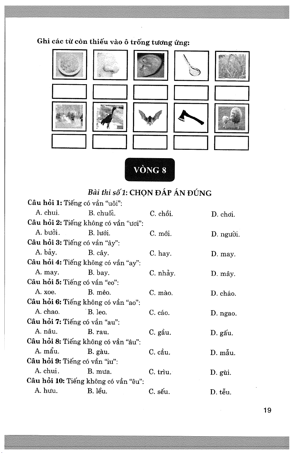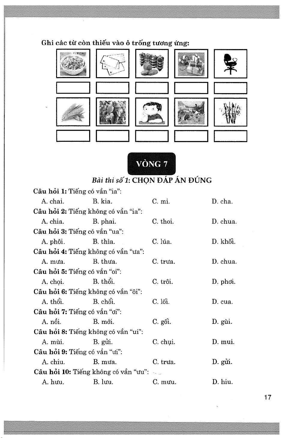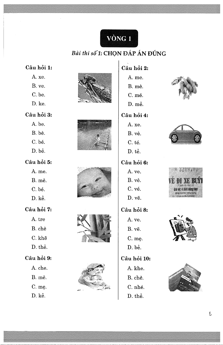 Đề thi Trạng Nguyên Tiếng việt Lớp 1 năm học 2024 - 2025 - Vòng 5 (Sơ khảo)