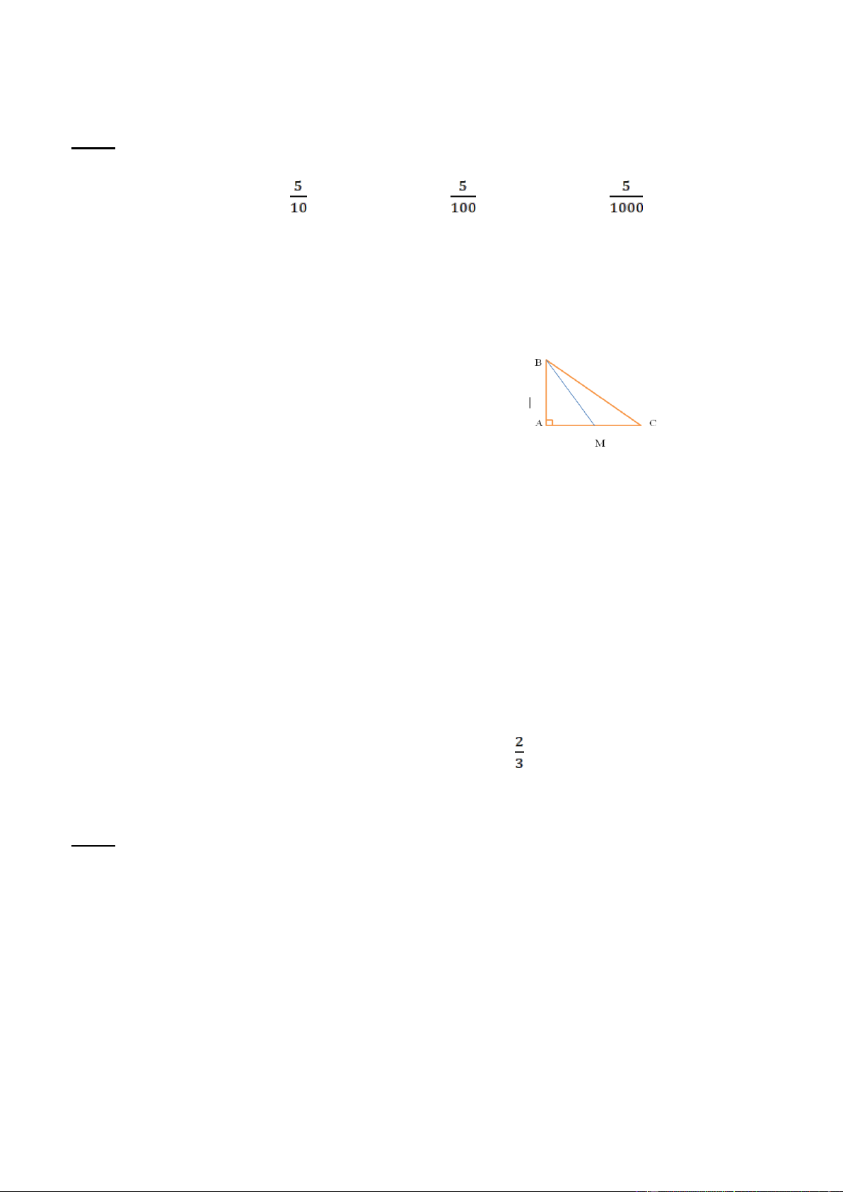 Câu 3: Giá trị của chữ số 2 trong số thập phân 20,555 là: A. 20 B. 12 C. 0,2 D. 2