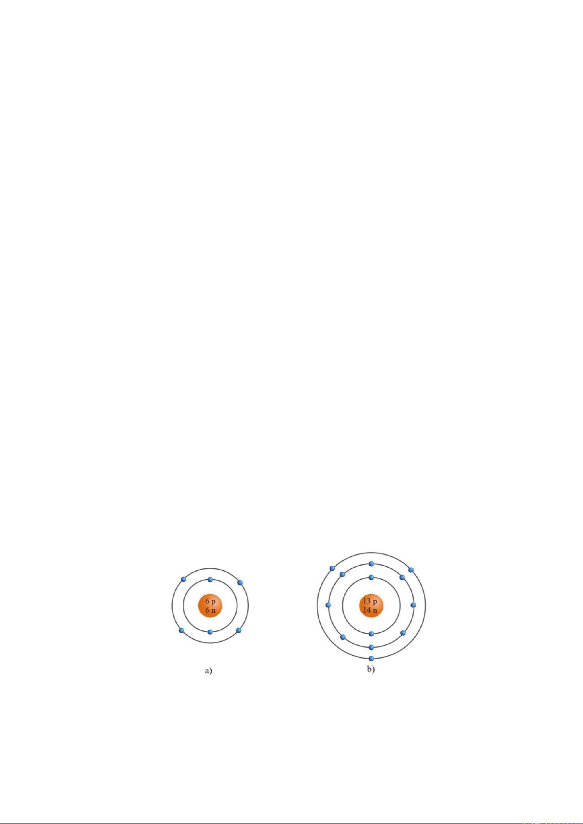 Hình 1.5. Mô hình cấu tạo nguyên tử carbon (a) và nguyên tử aluminium (b)