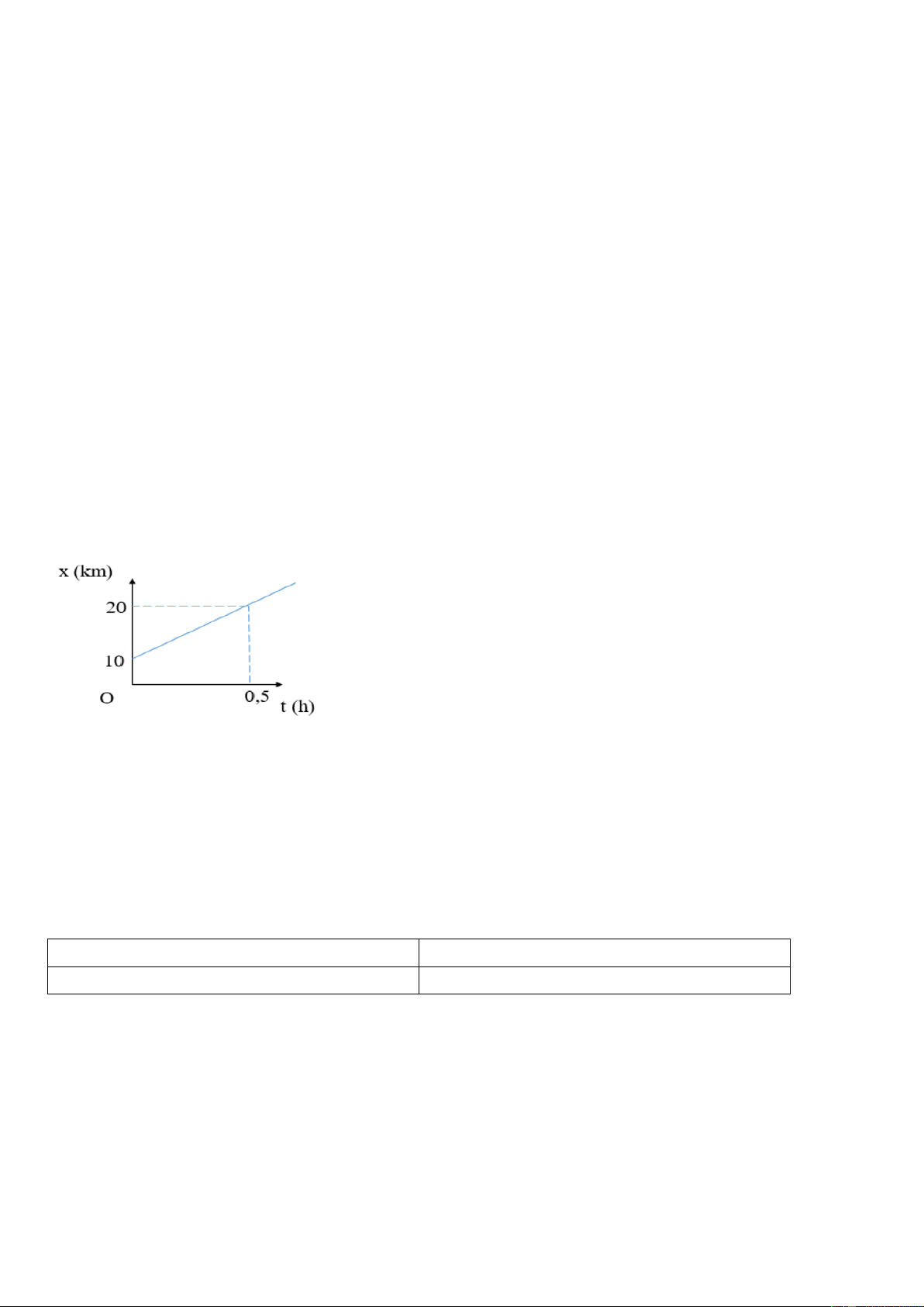 Câu 5. Một vật chuyển động thẳng đều có đồ thị tọa độ theo thời gian như trên hình vẽ. Dựa vào đồ