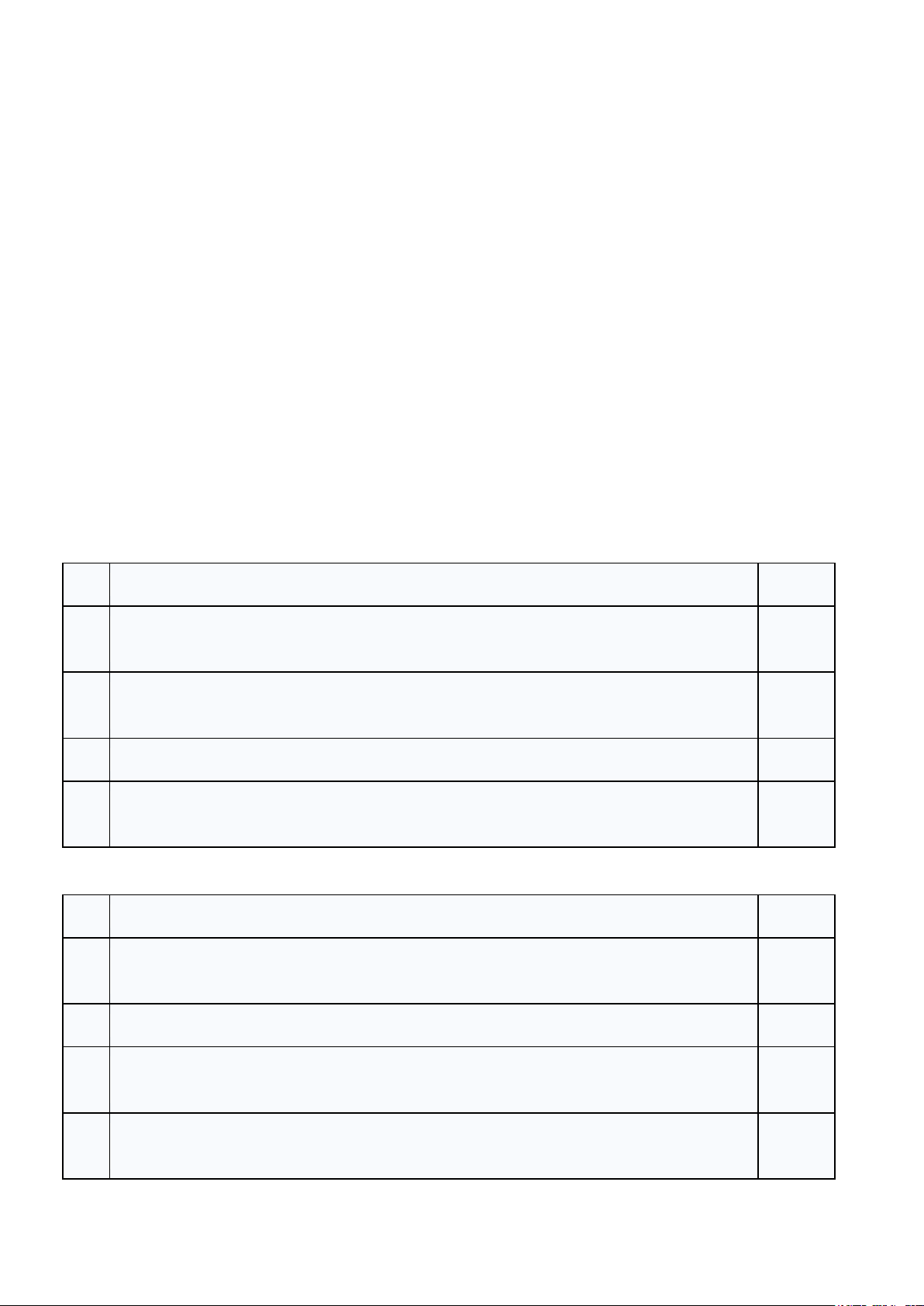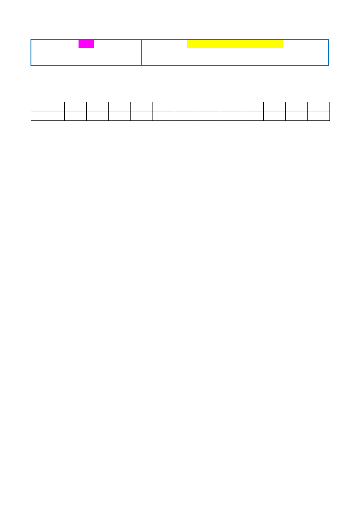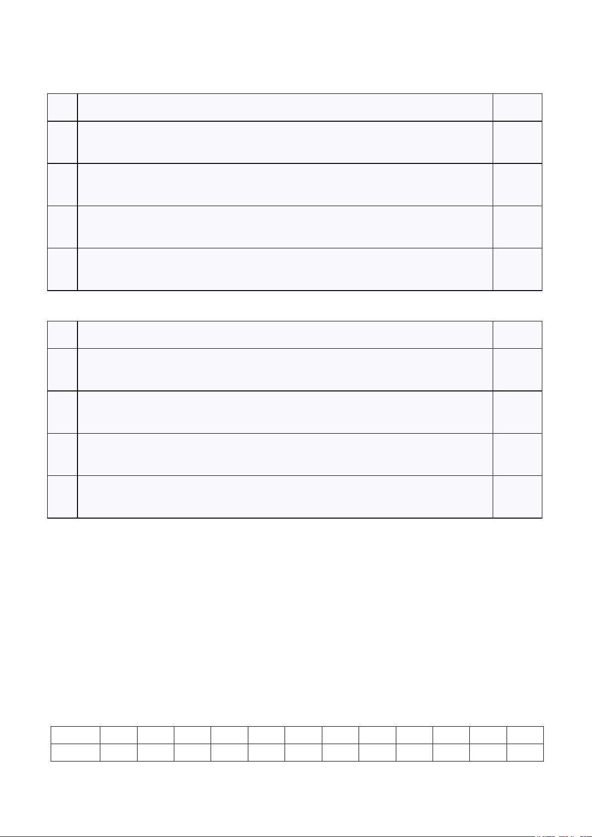 Mỗi ý trả lời đúng được 0,25 điểm Câu 1 2 3 4 5 6 7 8 9 10 11 12 Trang 7 Đáp án D B A D B A B D C B A D