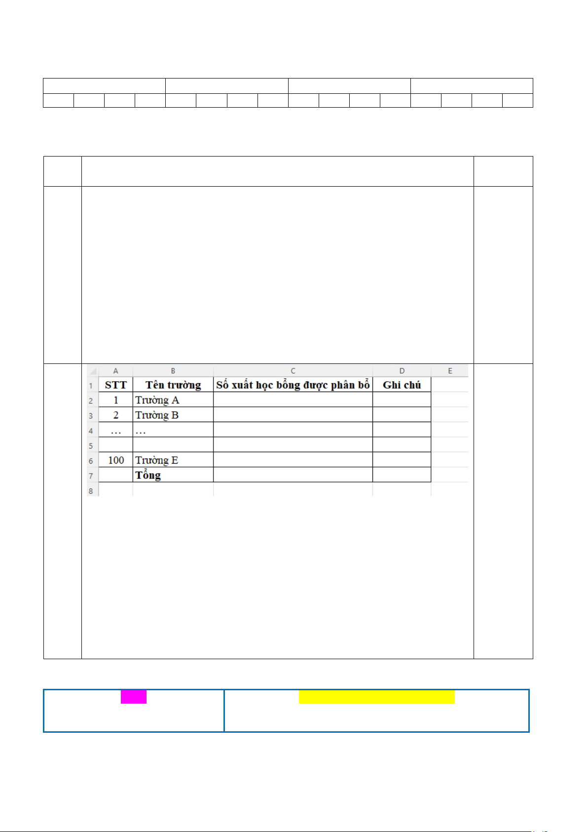 Câu 17 (1,5 điểm): Bảng tính đang lưu danh sách điểm học tập của học sinh. Em hãy giải