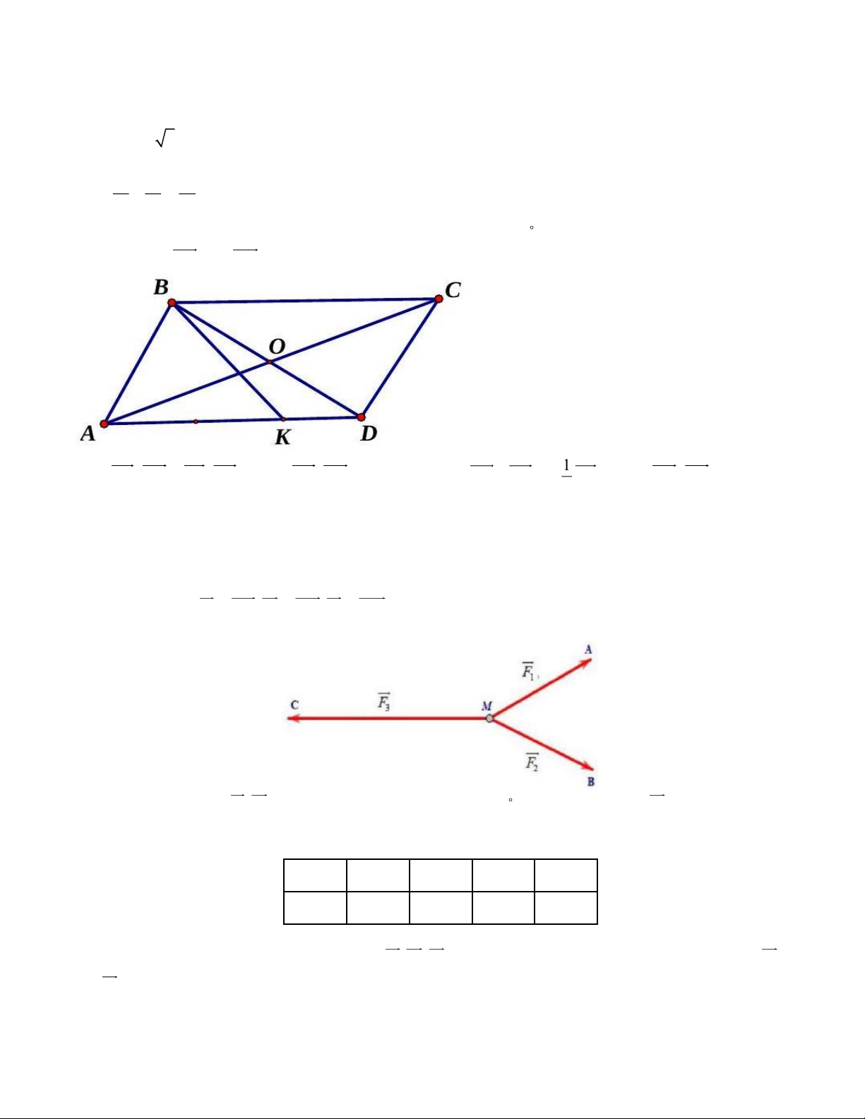 yên. Cho biết cường độ của lực F , F đều là 120N và góc AOB = 120. Xác định cường độ của lực F . 1 2 3 A. 150N . B. 60 3N . C. 60 N . D. 120N .