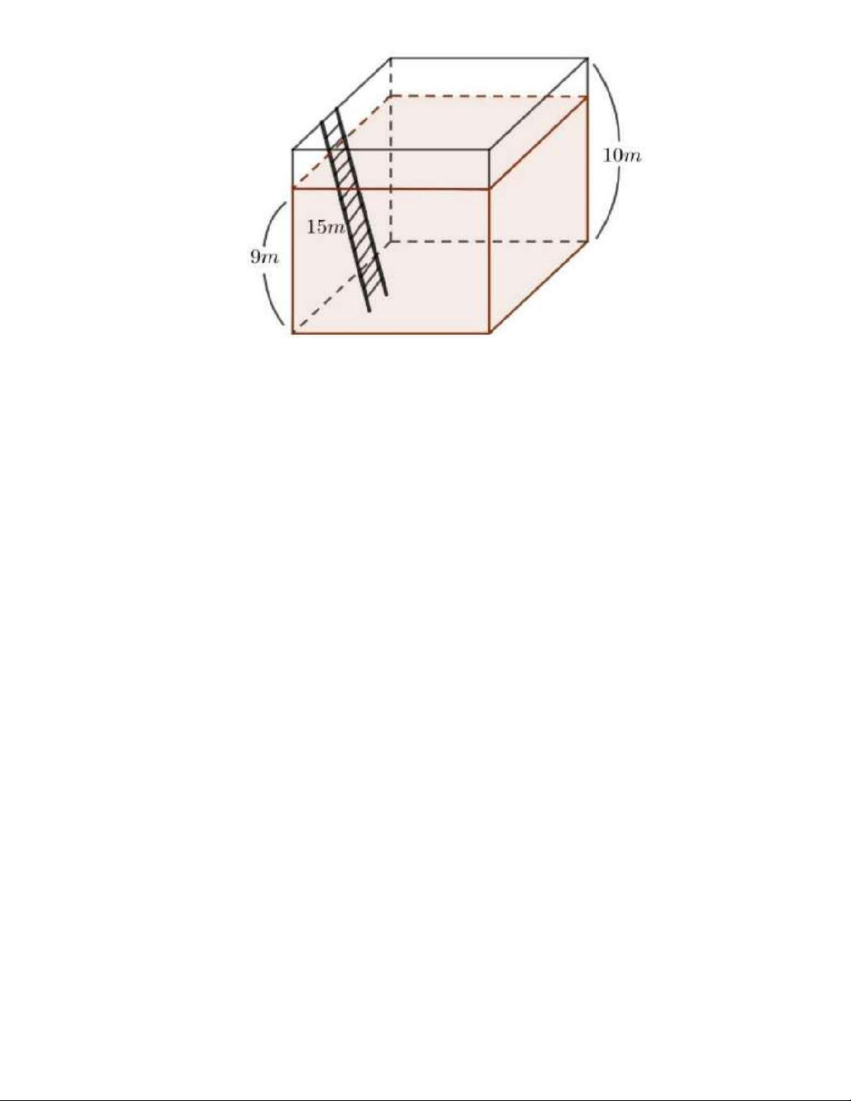 chiếc thang có độ dài 15 mét nối đáy bể và mặt bể (tham khảo hình vẽ bên). Khi mặt nước cách mặt bể 1 mét thì phần