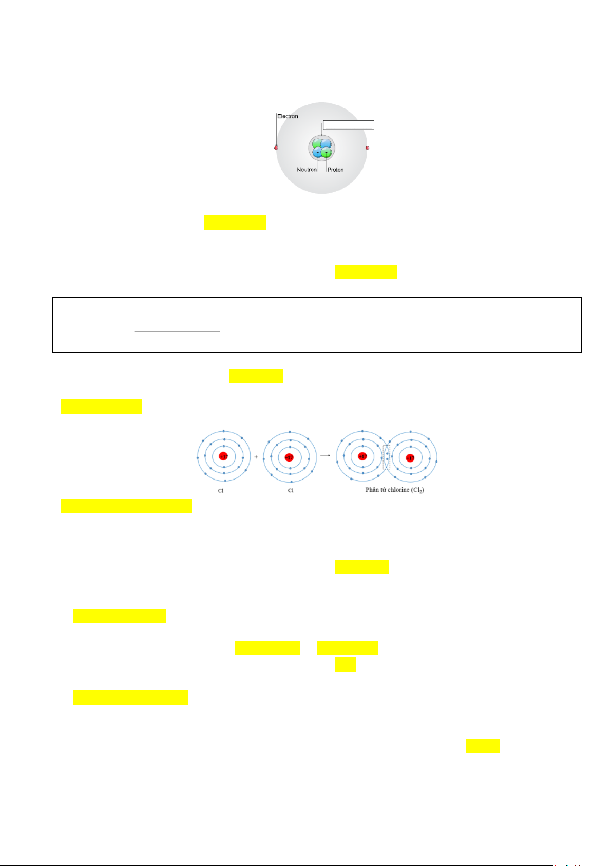 Câu 5. Phân tử Cl2 được hình thành từ sự liên kết của 2 nguyên tử Cl bằng cách nào? Trang 10