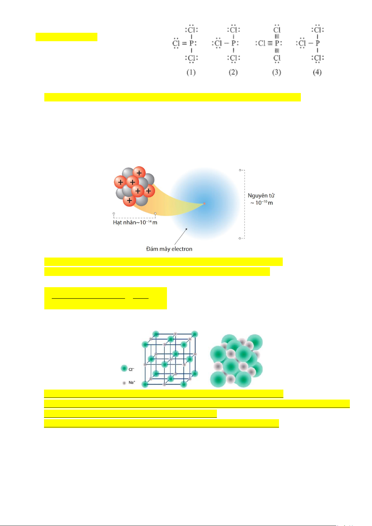 Câu 23. Công thức nào sau đây ứng với công thức Lewis của phân tử PCl3 ? Trang 13 A. Công thức (1). B. Công thức (2). C. Công thức (3). D. Công thức (4).