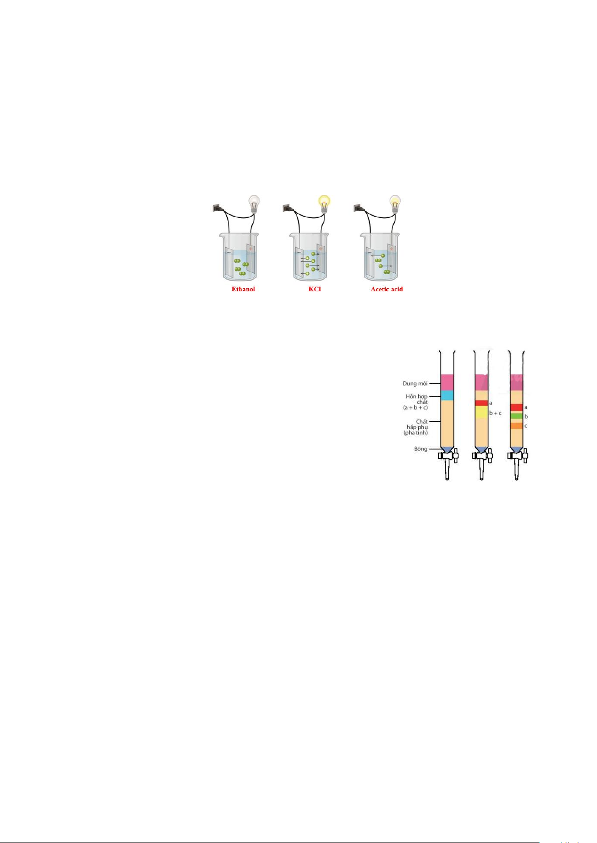 Câu 3. Thực hiện thí nghiệm với 3 chất tan khác nhau là ethanol, potassium chloride và acid acetic như hình dưới đây.