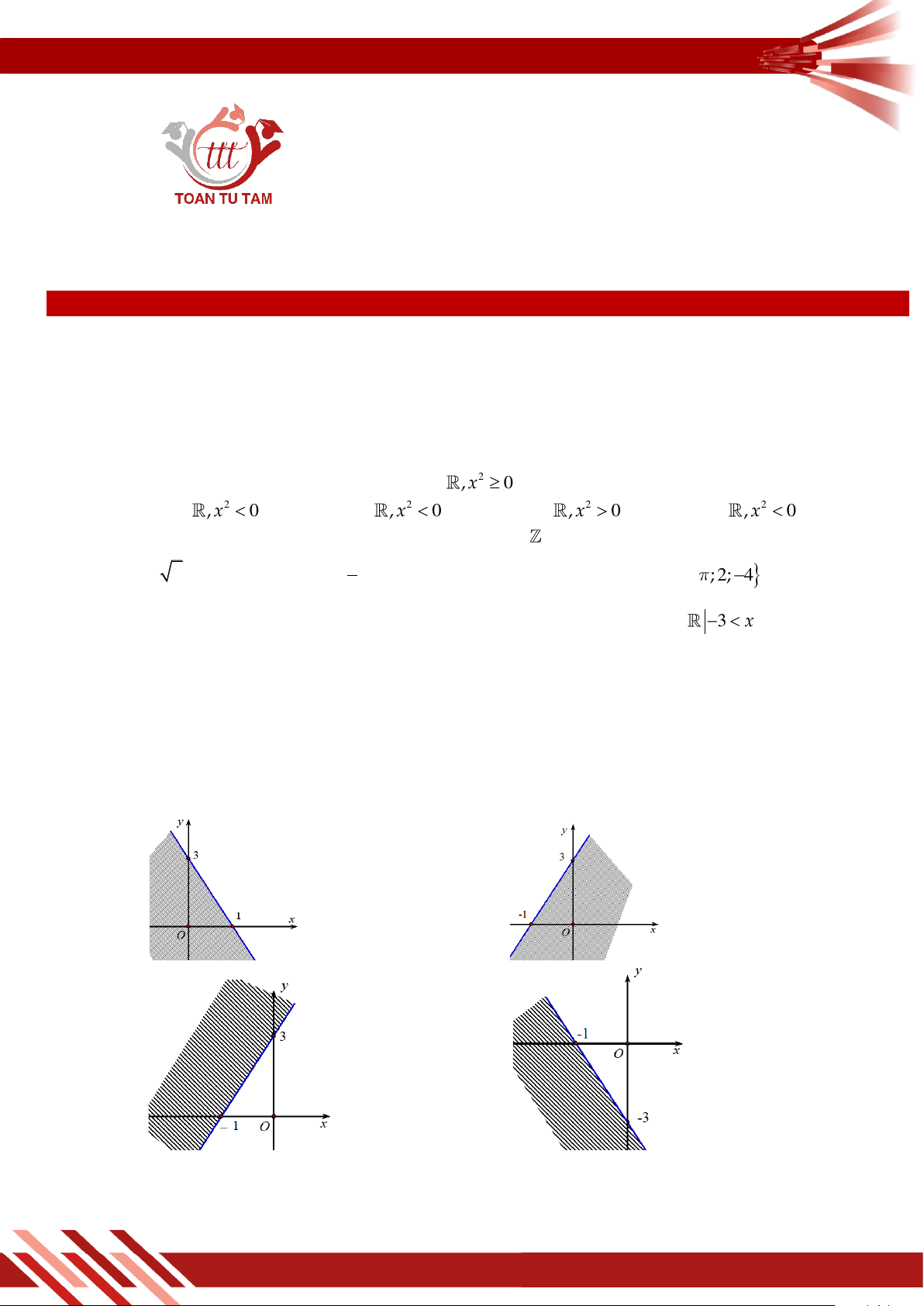 » Câu 11. Cho bất phương trình: 2x y 3 . Miền nghiệm của bất phương trình trong mặt phẳng tọa độ Oxy là