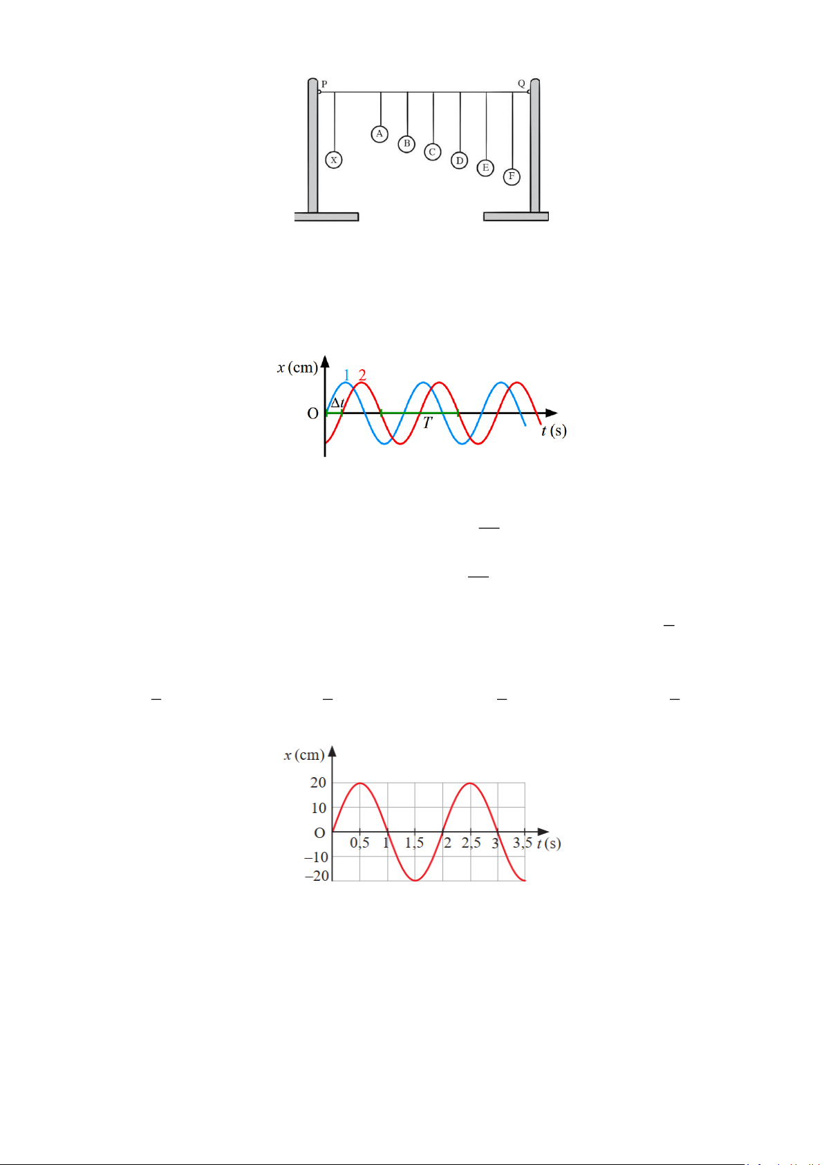 Câu 11: Hệ con lắc Barton được cho như hình vẽ. Khi kích thích con lắc X dao động, tất cả các con