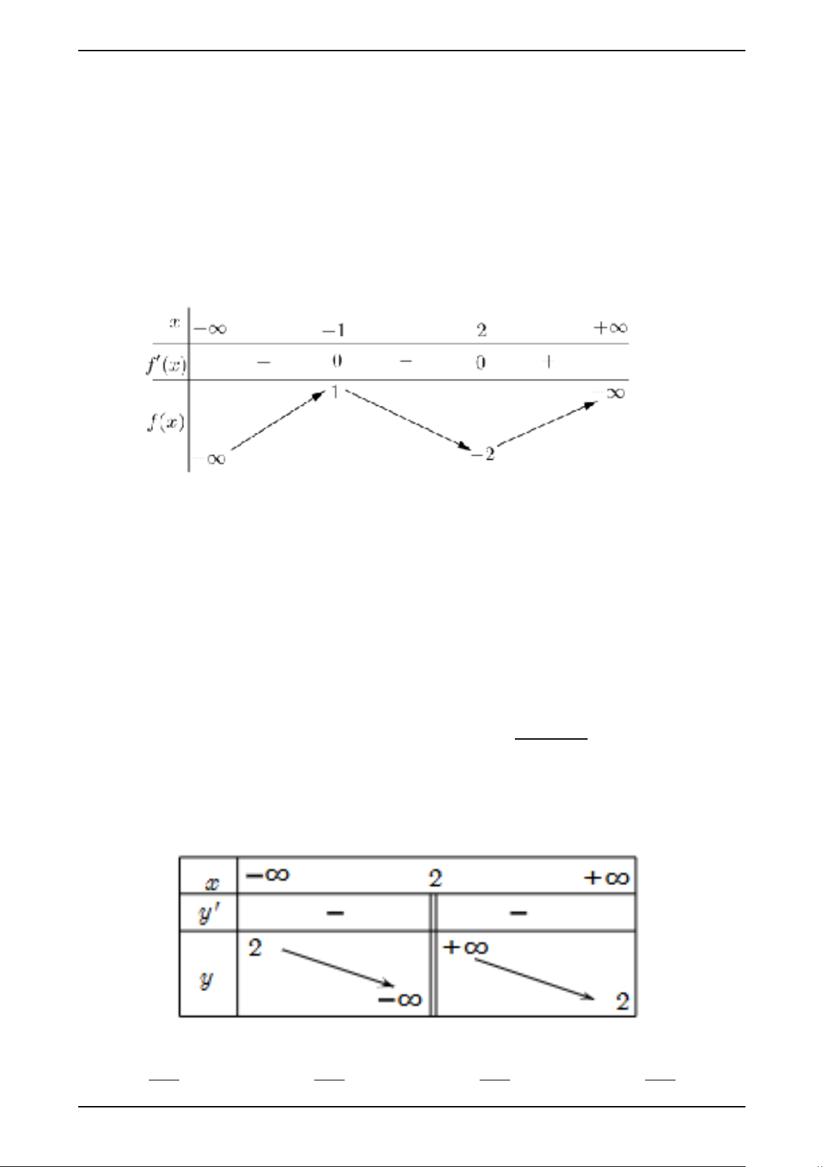 Câu 6. Cho hàm số y = f (x) có bảng biến thiên như sau: