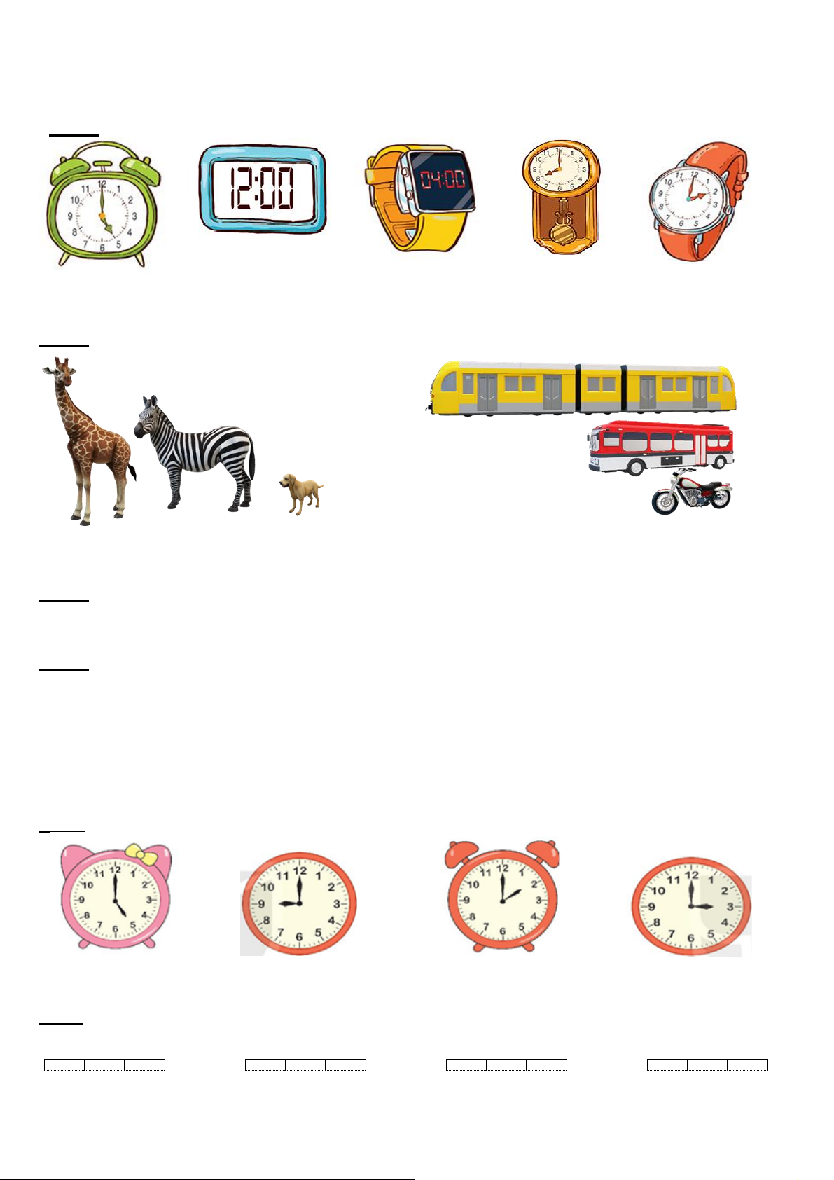 Bài 1: Xem Đồng hồ và cho biết đồng hồ chỉ mấy giờ? ........... giờ ........... giờ ........... giờ ........... giờ ........... giờ