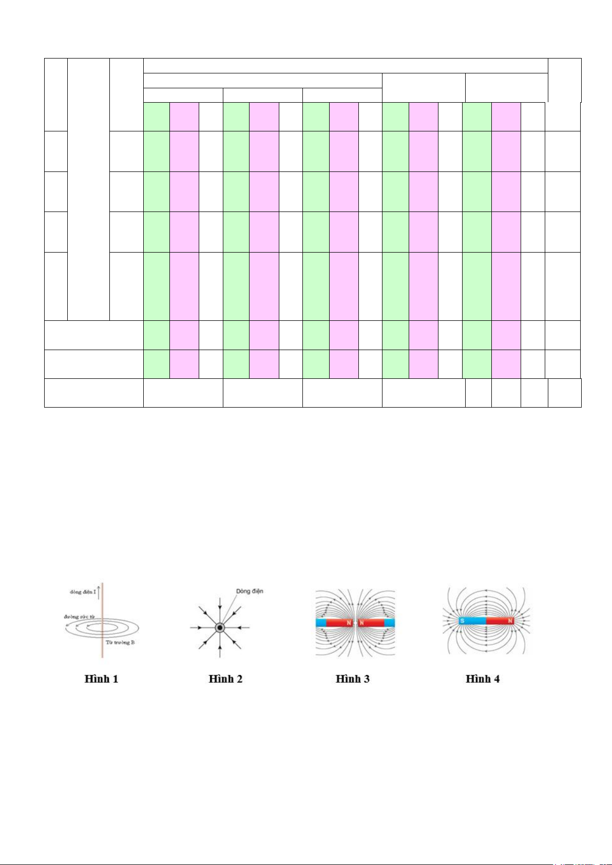 Câu 3. Trong các hình vẽ sau, hình vẽ nào biểu diễn không đúng các đường sức từ? A. Hình 1. B. Hình 2. C. Hình 3. D. Hình 4.