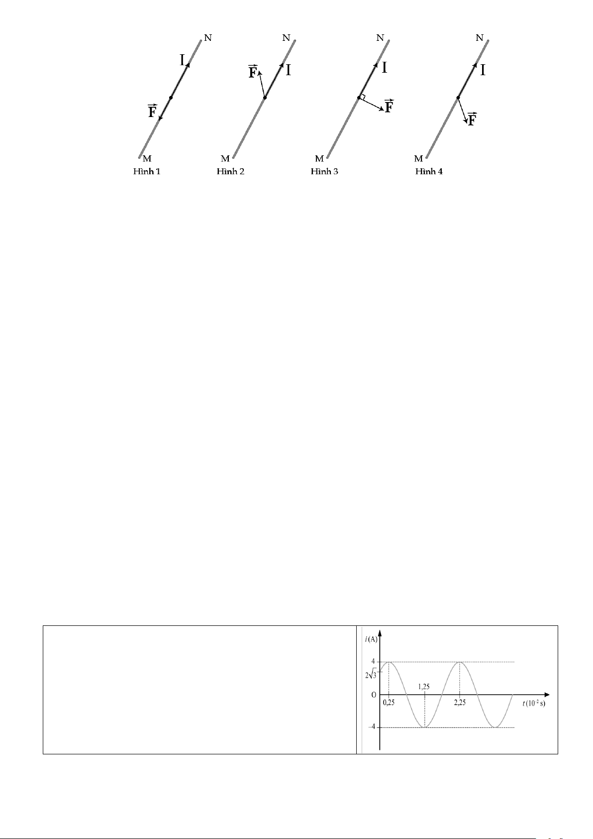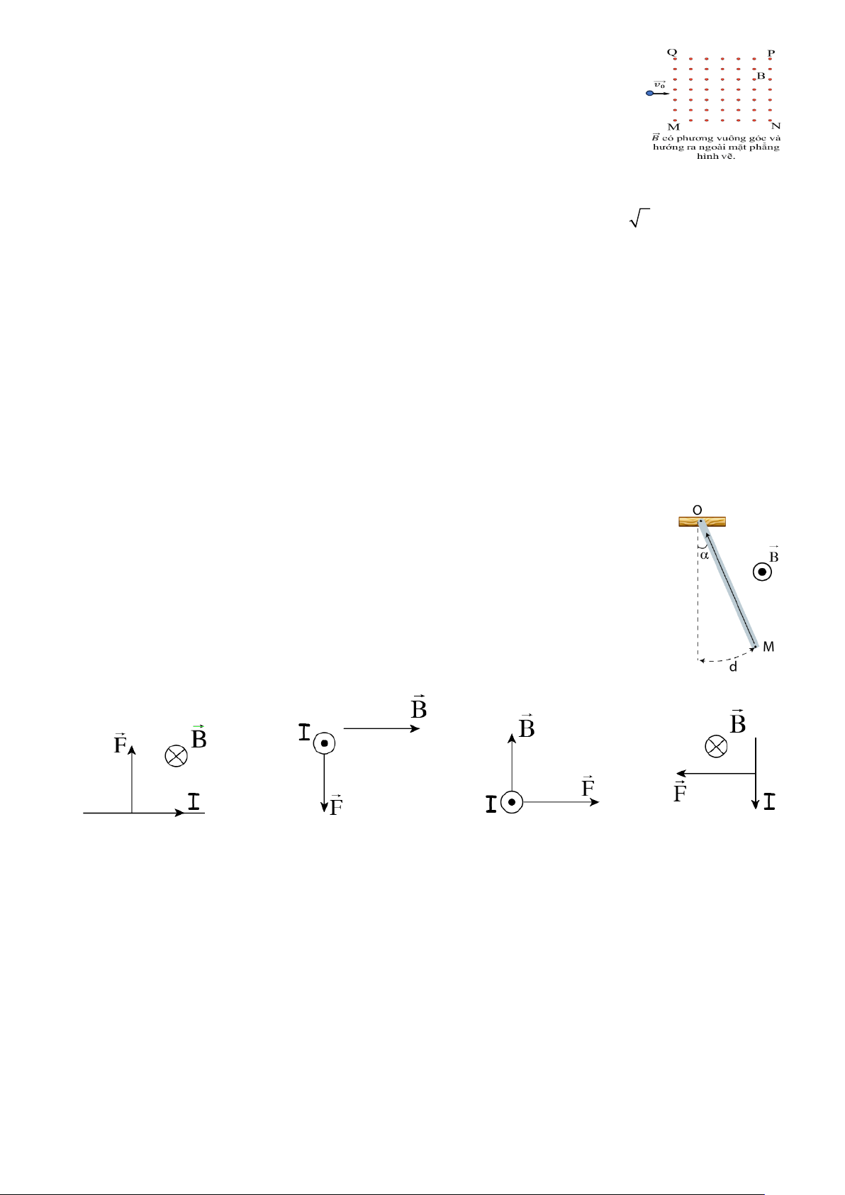 Câu 17. Trong các hình vẽ bên, MN là đoạn dây dẫn mang dòng điện I đặt trong từ trường đều và vuông góc